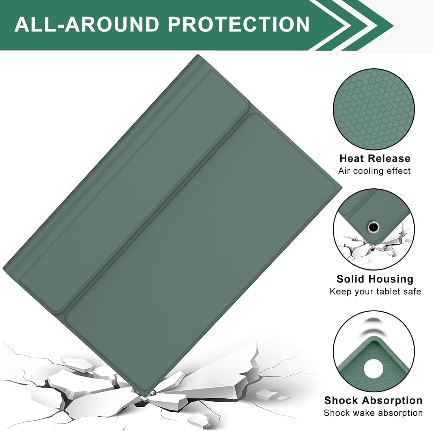 - â ăFull Protection for Samsung Galaxy Tab A9+ăOur Galaxy tab A9 Plus case with keyboard made of soft TPU and flexible TPU inner shell, which are drop-proof and scratch resistant, also not slippery or stick while carrying it around, greatly reduces the damage to your tablet caused by collisions. The inner lining of the case features a honeycomb design that helps dissipate heat from the tablet, improving the performance and extending the life of the Samsung A9+ tablet.