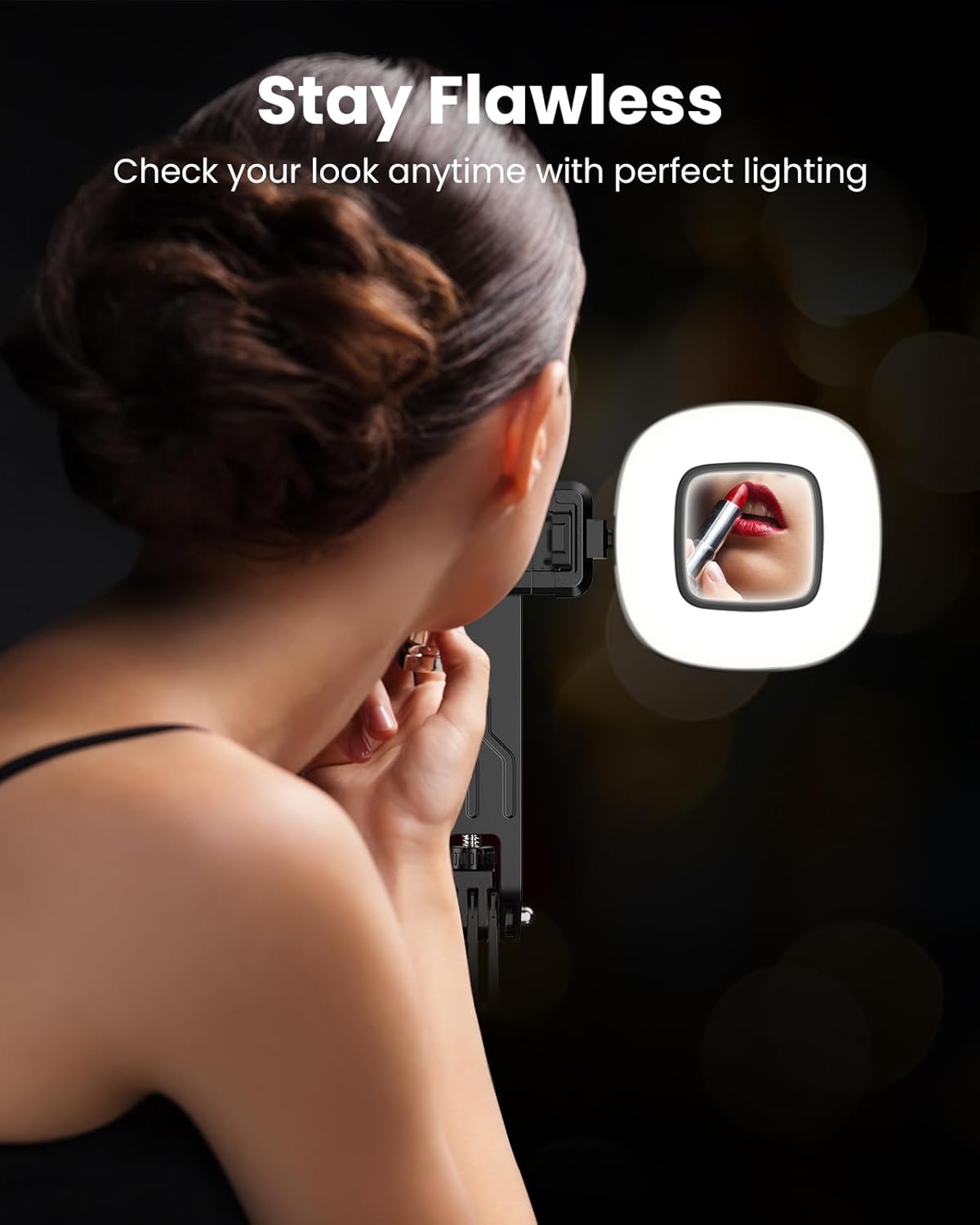 - 【Remote and mirror fill light for easy shooting】This tall tripod is a great selfie tool, has a detachable Bluetooth wireless remote (10m range) for easy solo full-body shoots. It uses type-c for charging, eliminating spare battery hassle. The mirror fill light aids makeup/detail checks during shooting for flawless pics, being a mobile photography essential
