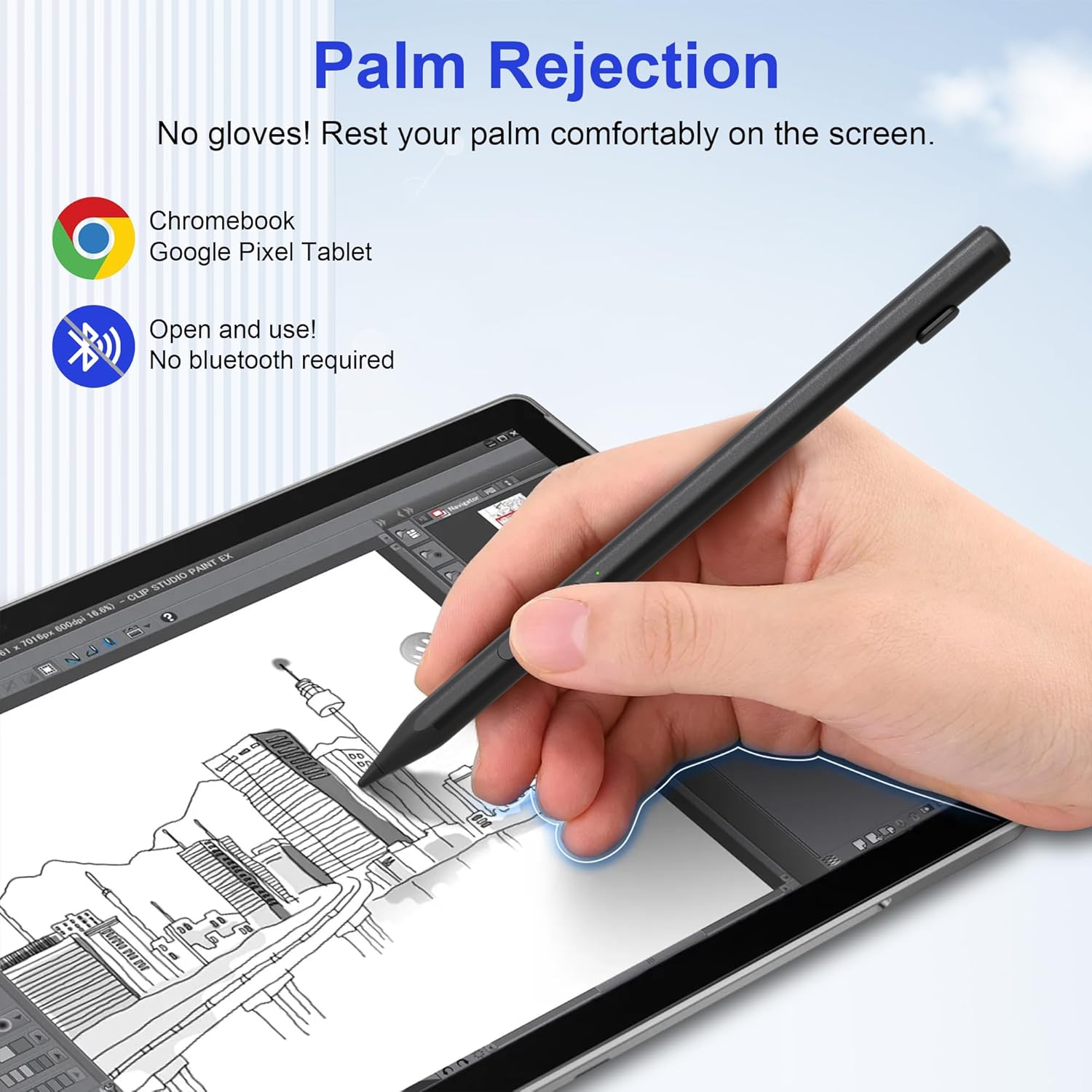 - Anti-Palm Rejection - USI chromebook stylus pen have palm-proof touch technology greatly improves the user experience. When drawing or handwriting, you can naturally support your hand on the screen and draw and write naturally! You don't have to worry about your palm or wrist accidentally touching the screen, causing a false touch or operation error, which interrupts the text or drawing input. It gives you a smoother experience, full of freedom, just as simple and natural as drawing and writing on paper.