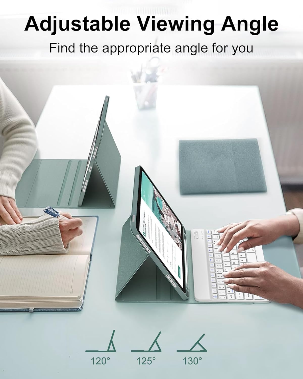 - 【Smart Protection with Multi-View Angles and Pencil Holder Case】The high quality Keyboard Case for iPad 10th Generation is made of premium vegan exterior composition leather and soft anti-slip lining, a protective keyboard cover gives your tablet 360°front and back protection from accidental scratches. And 10th gen ipad case has multiple viewing angles and apple pencil holder. You can choose your optimal angle to use your tab and don't worry about apple pencil get lost or in the way.