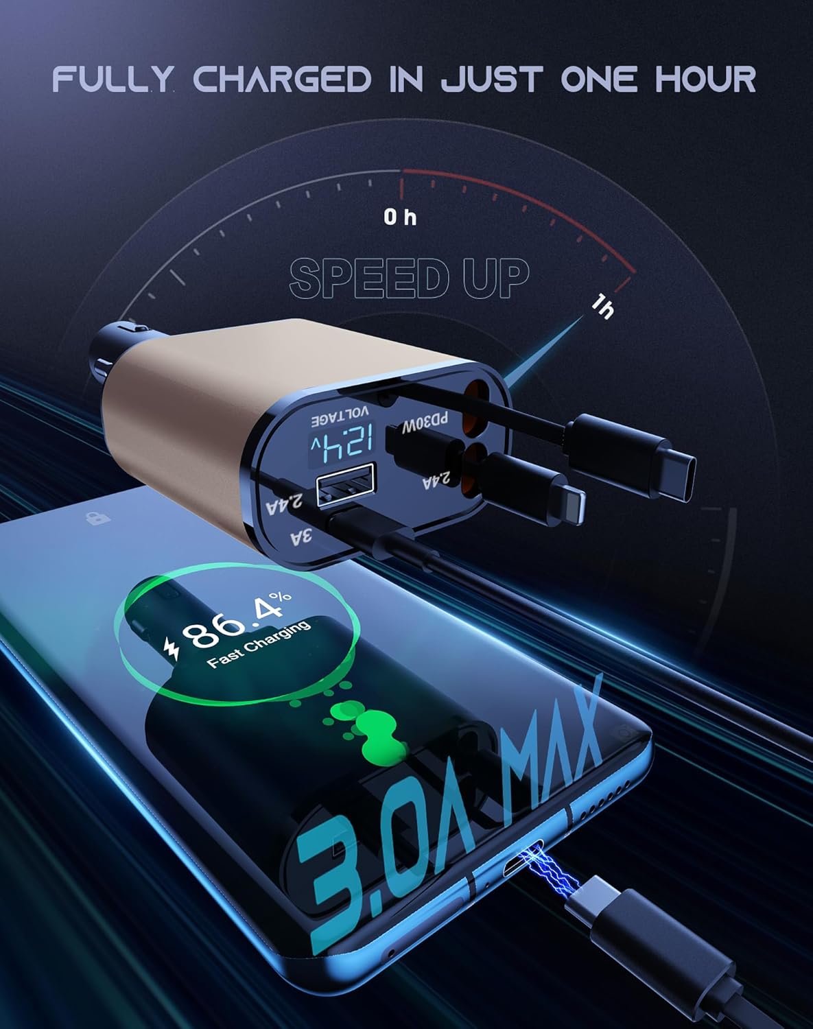 - REAL FAST CHARGING CAR CHARGER - Elevate your charging game with our innovative car phone charger, certified with Multi-Fast Charging Protocol, including PD, QC3.0, AFC, MTK and FCP. With its 30W Type-C and 12W Cords, alongside 15W USB-C and 12W USB-A Ports, gives 5 times faster charging speed than other traditional car chargers, making every second count! [Please note: This charger is for charging only and cannot be used for CarPlay.]