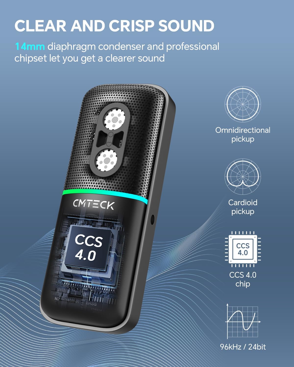 - 🎙 Dual Pickup Patterns for Any Setup: Switch between cardioid and omnidirectional modes. Cardioid is great for solo gaming or streaming, blocking side noise. Omnidirectional is ideal for group calls or live chats, picking up sound from every direction.