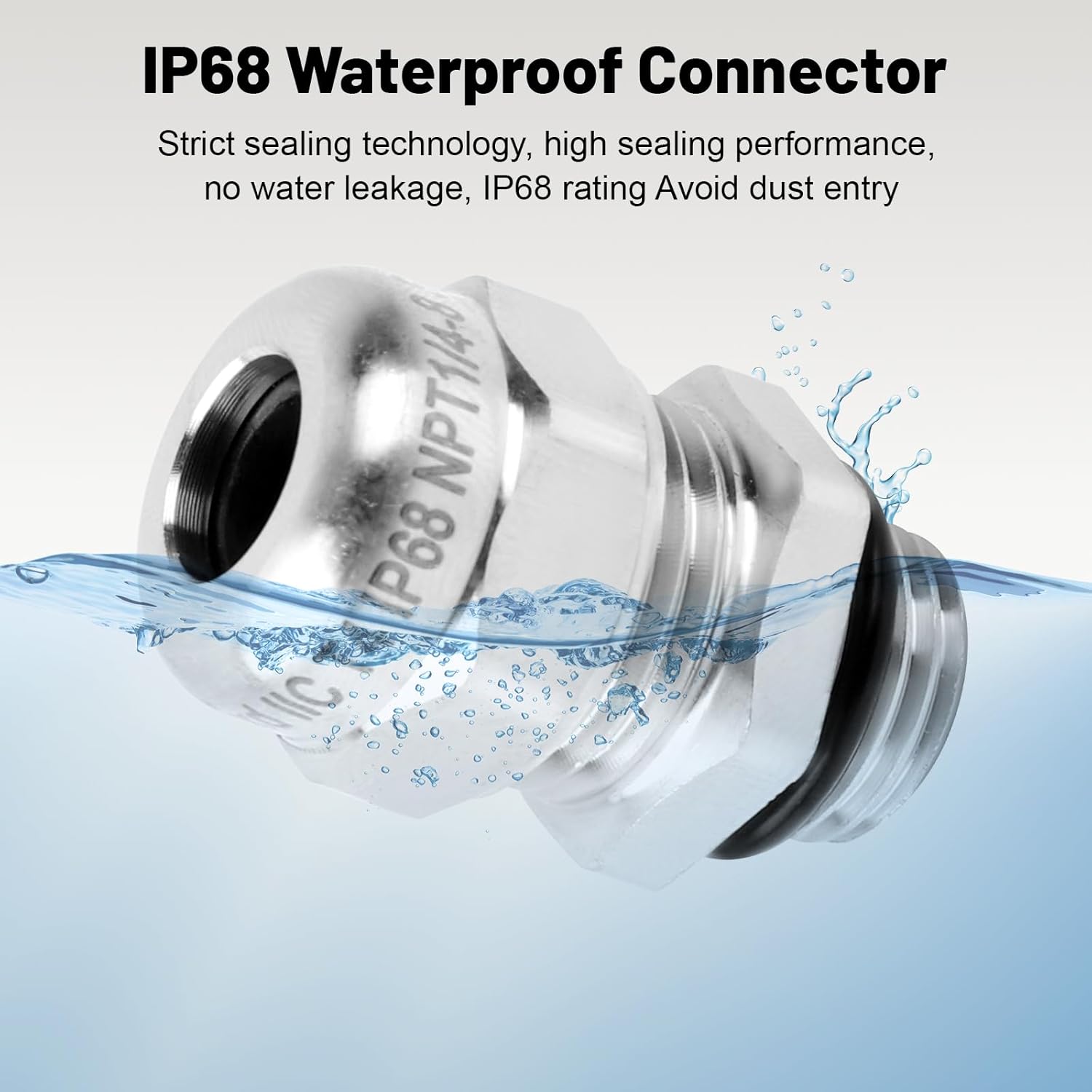 - Quality Materials: These 1/4" cable gland are made of 304 stainless steel for superior reliability and to withstand harsh environments that plastic glands cannot