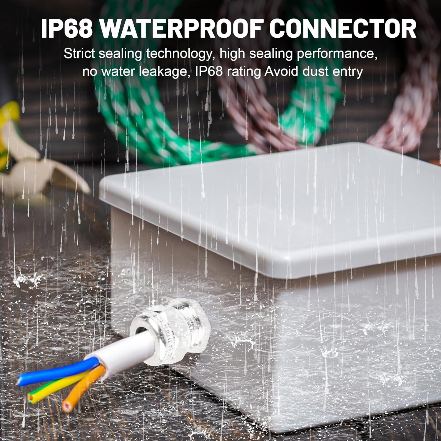 - Extended Threads: Our waterproof cable gland design features extended threads that allow it to fit perfectly in thicker junction boxes, providing our customers with the flexibility of installation