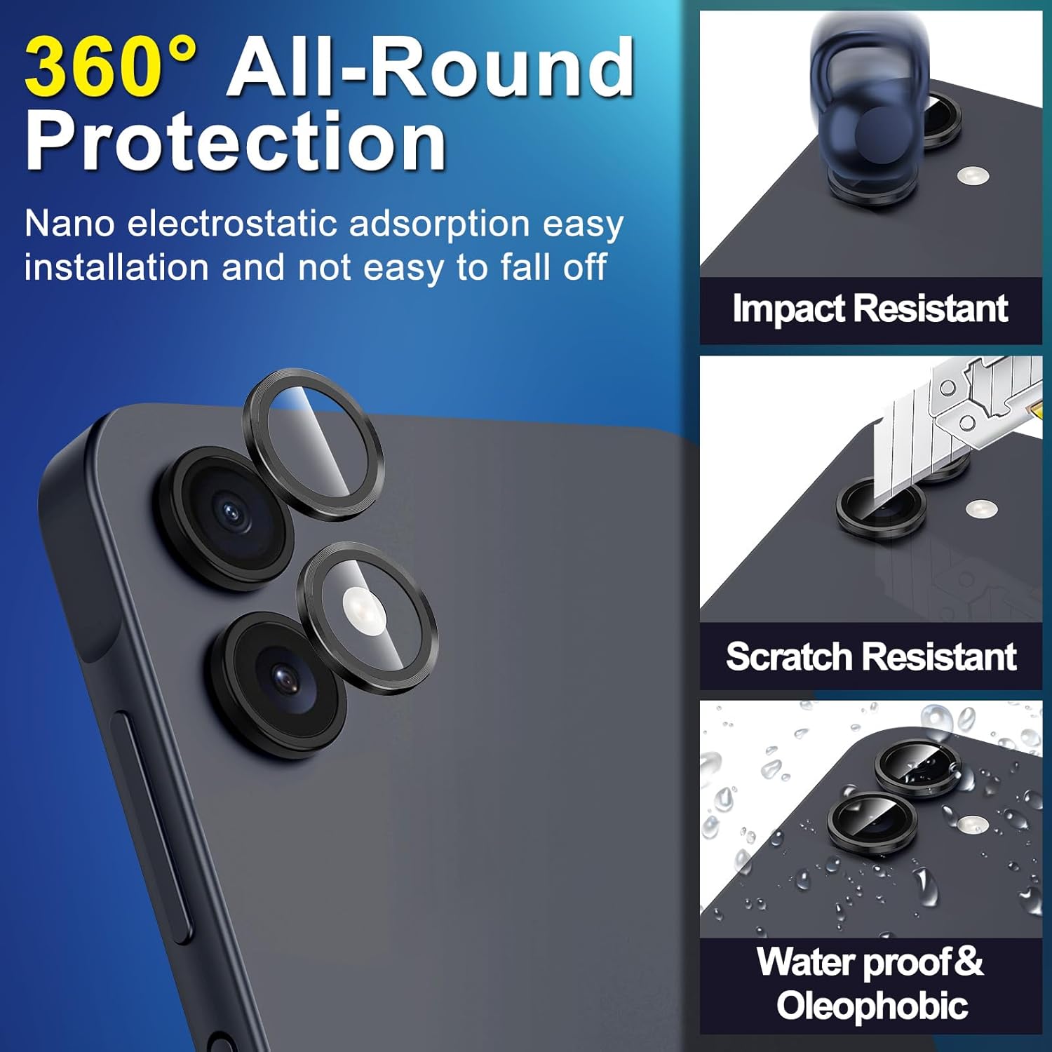 - ă9H Ultra ProtectionăMade of 9H hardness coated tempered glass and aviation aluminum alloy. This camera protector is sturdy and not bulky, can prevent the camera from scratches, scuffs and bumps. Lightweight, Dustproof, Waterproof, Oleophobic and will not affect the use of the phone case.