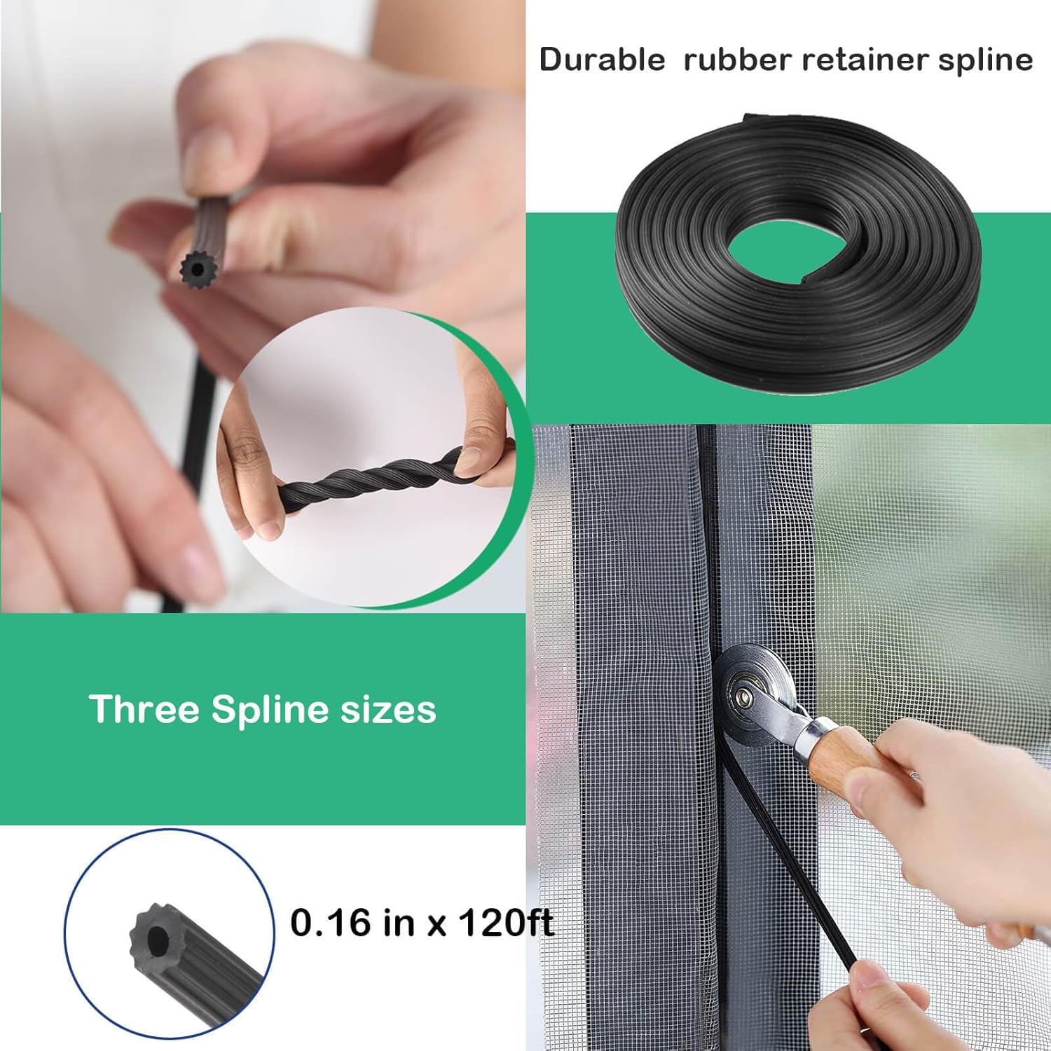 Window Screen Spline, 0.16" x 120ft Screen Retainer Spline for Window Screen Replacement, Black, Tooltriz