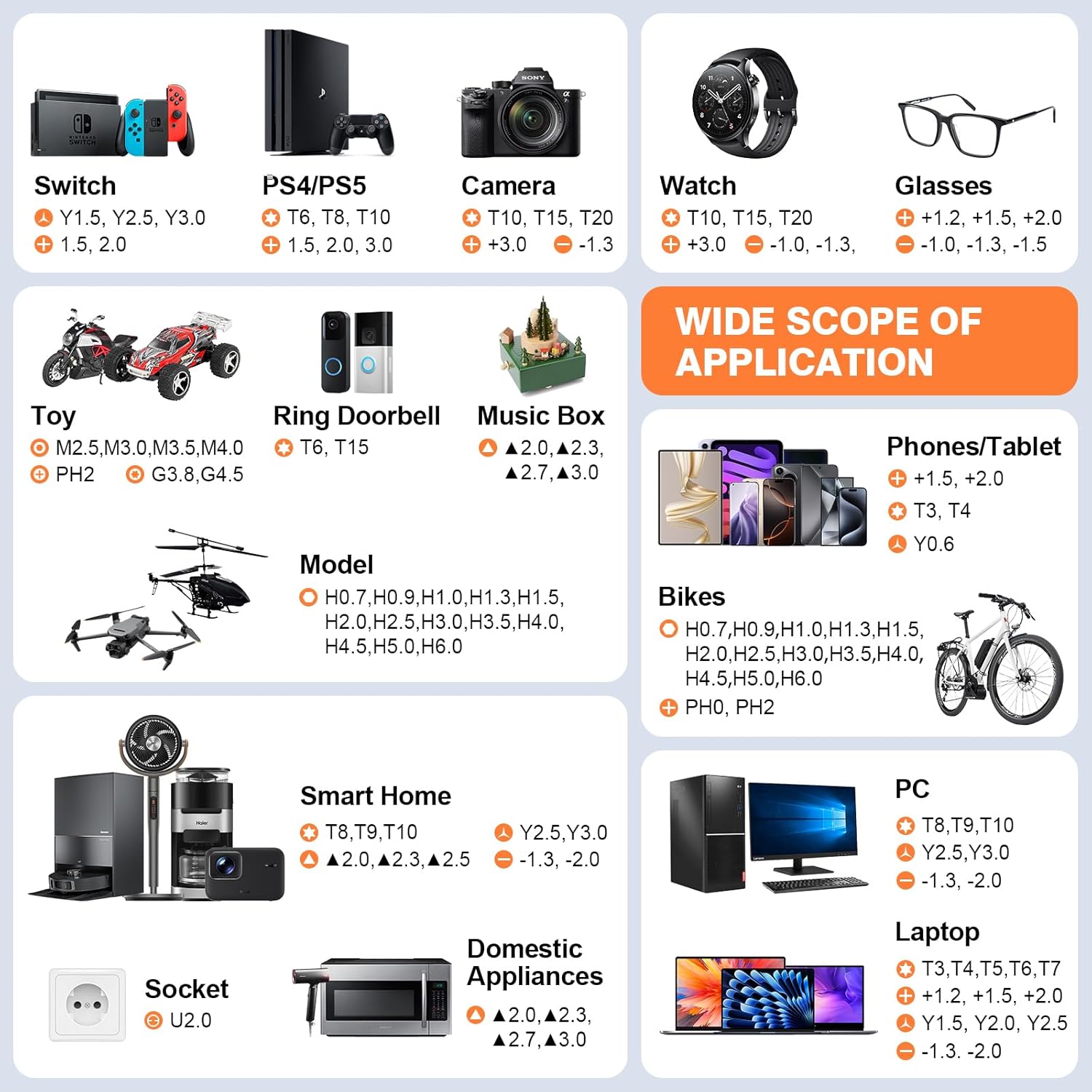 - 【Wide Range of Application】Suitable for iPhone/Samsung/Huawei/Xiaomi and other cell phones; iPad/Mini/Air/Pro and Huawei/Honor and other tablets; Macbook/Air/Pro; Kindle/Kindle Fire; Ring Visual Doorbell/Visual Doorbell 2/Pro/Elite; PS4/PS5/XOBX game consoles as well as PCs Laptops, Jewelry, Toys, Aeromodels, Drones, RC Cars and some small appliances such as Coffee Machines.