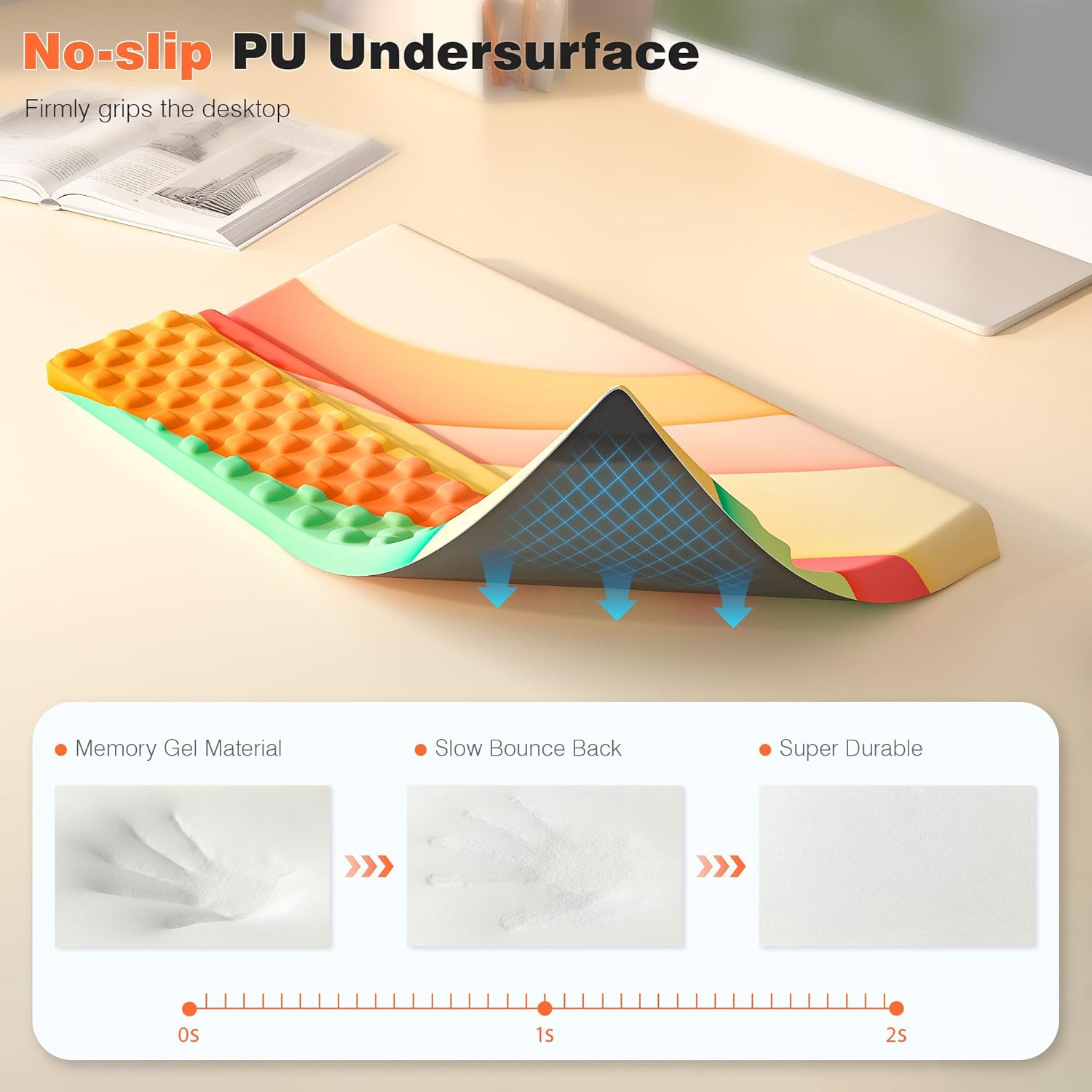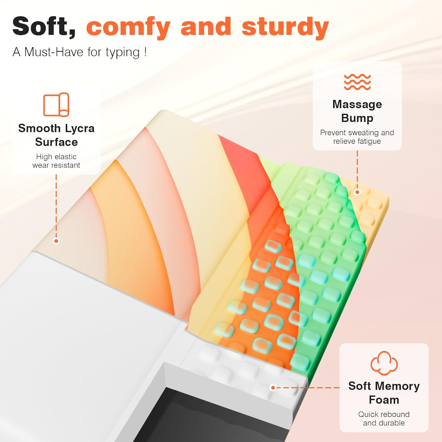 - Massage protrusions relieve wrist pain and fatigue, keep you sweat-free, and maintain perfect comfort while typing on your keyboard pad.