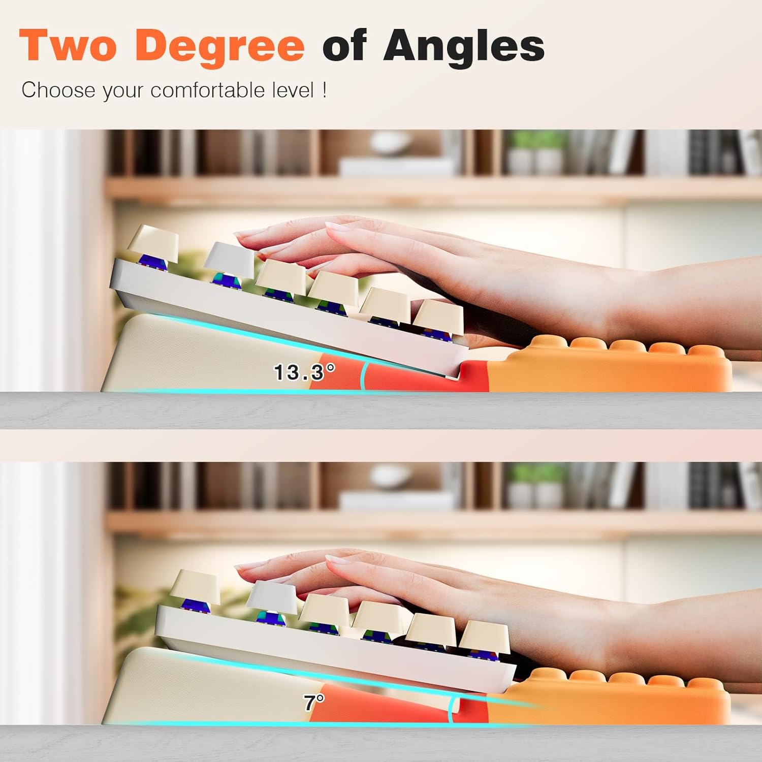 - Works with most keyboards and features two angle settings - adjust the tilt to match how you type for all-day comfort.