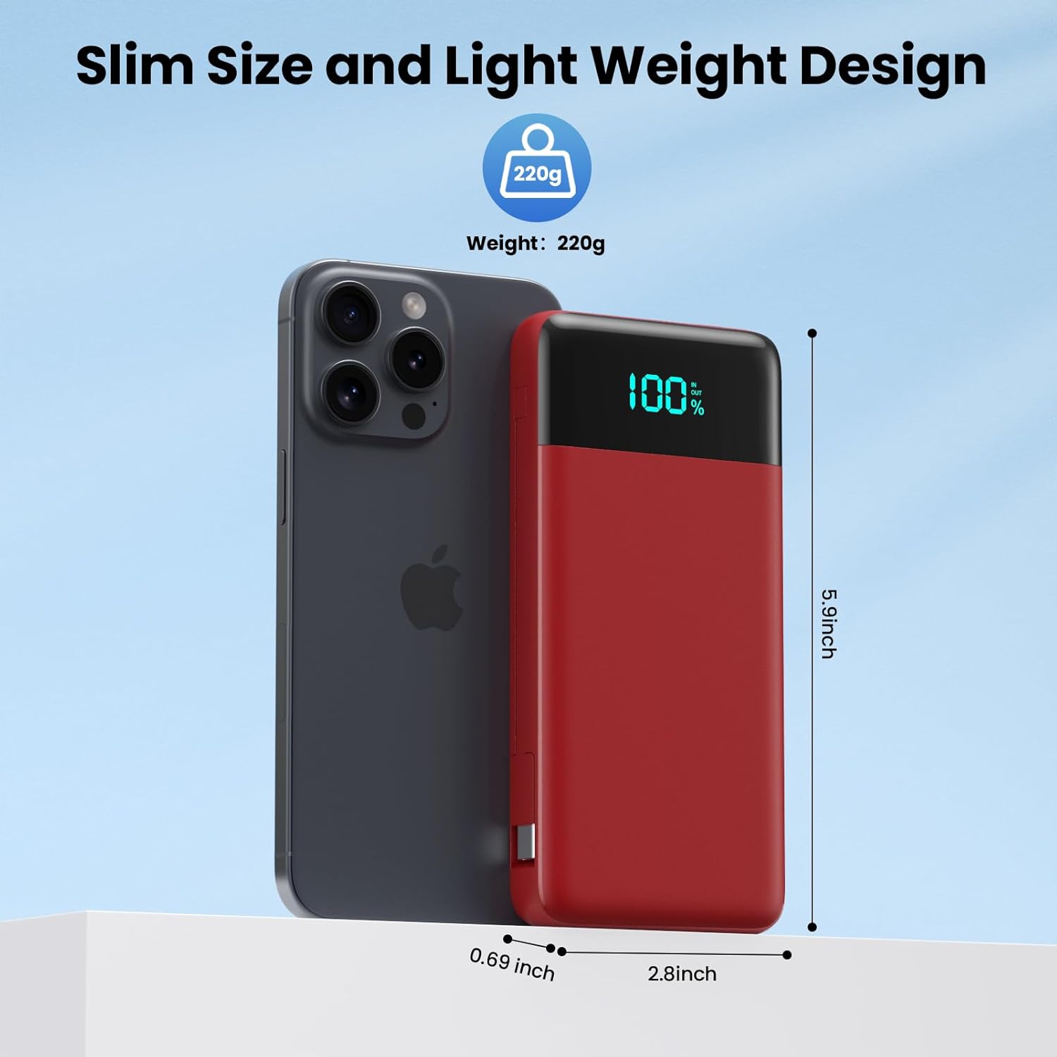 - Special Feature : Portable Charger Power Bank with Built in Cables and AC Wall Plug for iPhone 15/14/13/12/Android, Travel Essential External Battery Pack ,PD USB C Fast Charging Power Bank, Airline Approved Safety Travel USB-C Charger,No need Carry Extra Cable and Adapter , 2 Ways to Recharging Power Bank Portable Charger Power Bank with Built in Cables and AC Wall Plug for iPhone 15/14/13/12/Android, Travel Essential External Battery Pack ,PD USB C Fast Charging Power Bank, Airline Approved Safety Travel USB-C⊠See more