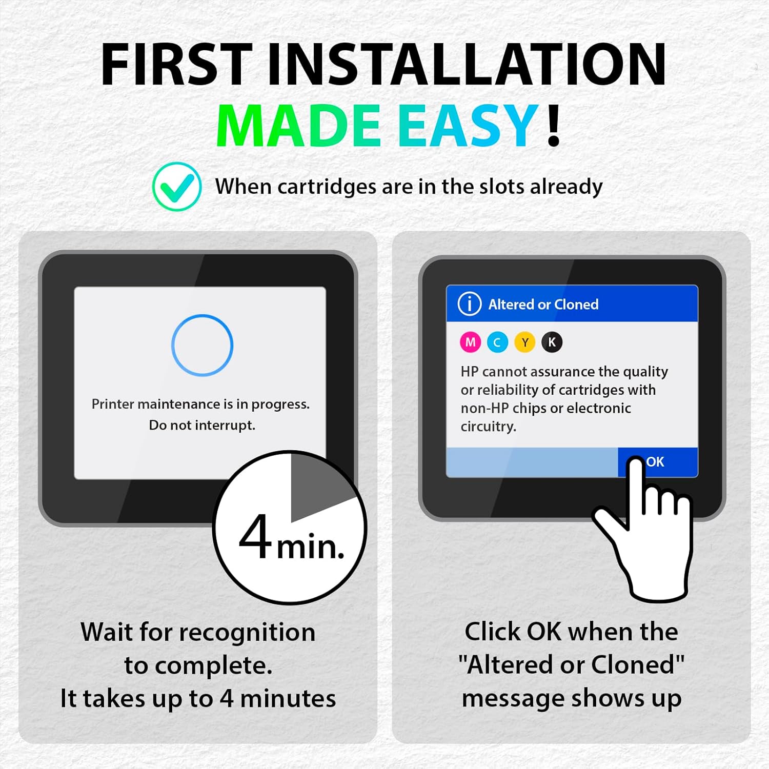 - Leakage Prevention: To ensure a clean installation, please hold the ink cartridge upside down for 1-2 minutes and wear gloves (included in the packaging) before installing.