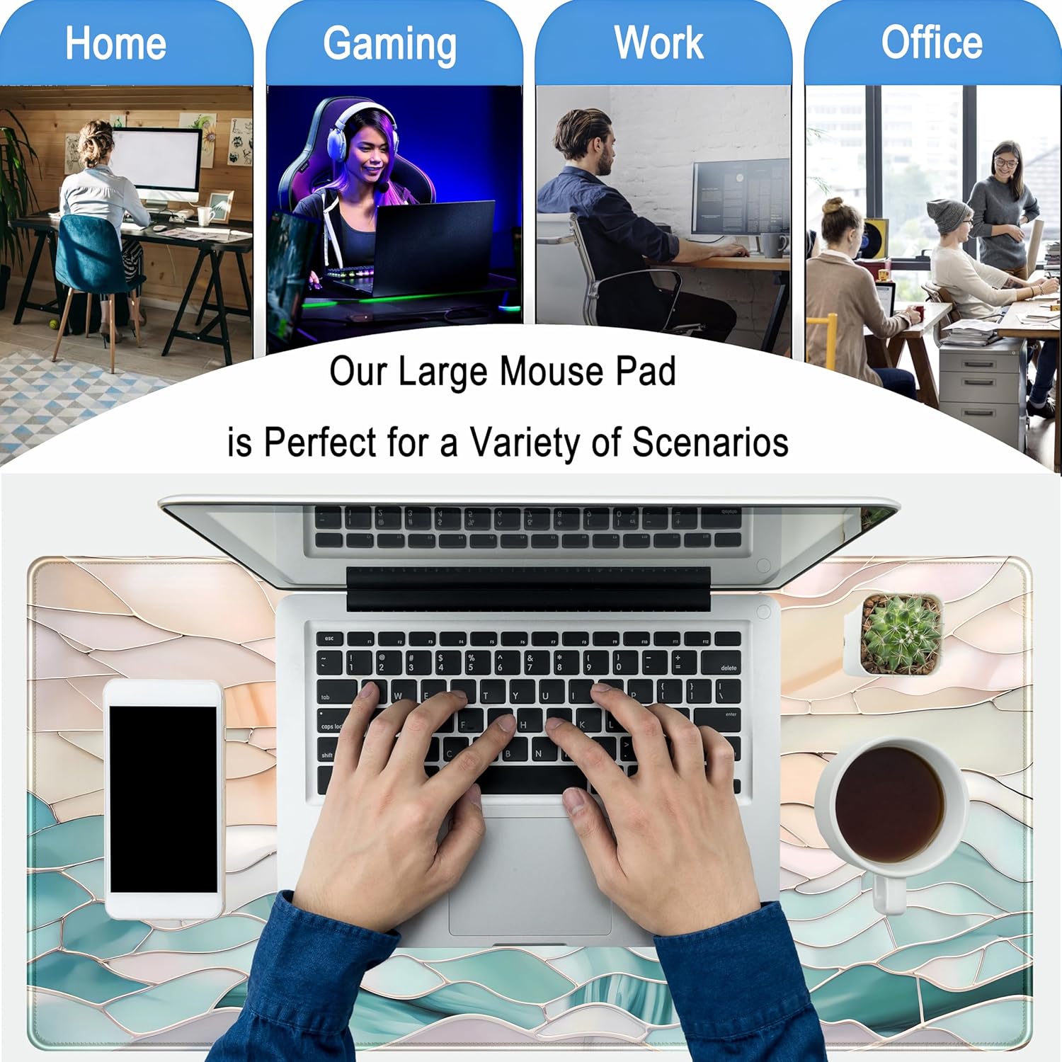 Desk Mat Gaming Desk Pad Large Mouse and Keyboard Pad, Abstract Serene Ocean Sunrise Mouse Mat XXL, Pastel Desk Protector Mat Computer Mats for Desktop Sun & Waves Office Decor 31.5" x 15.7"