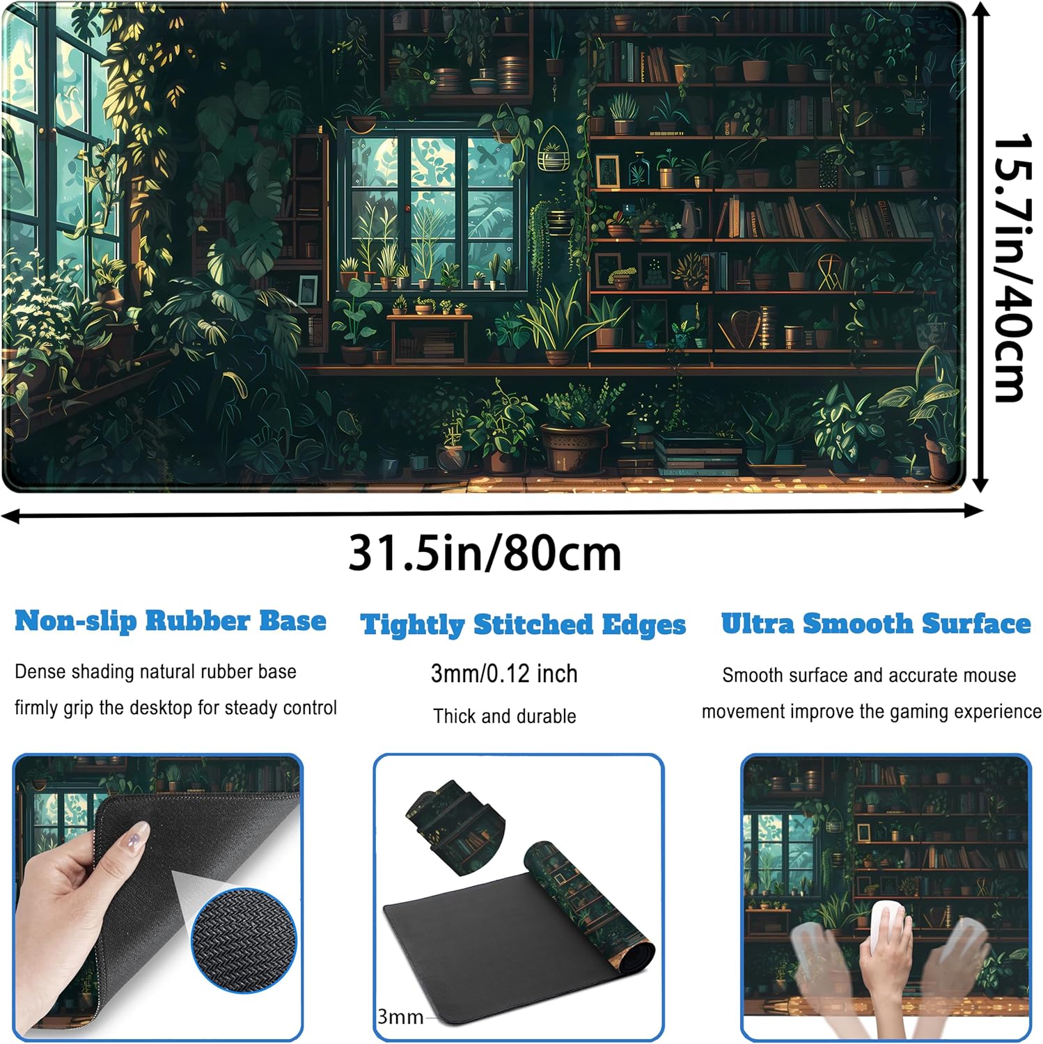 Green Plant Desk Pad Gaming Pad Extra Large Desk Mats Full Desk Mouse Pad XXL, Desktop Mat Computer Laptop Keyboard Pads, Office Home Decor Table Pad Cute Desk Accessories 31.5" x 15.7"