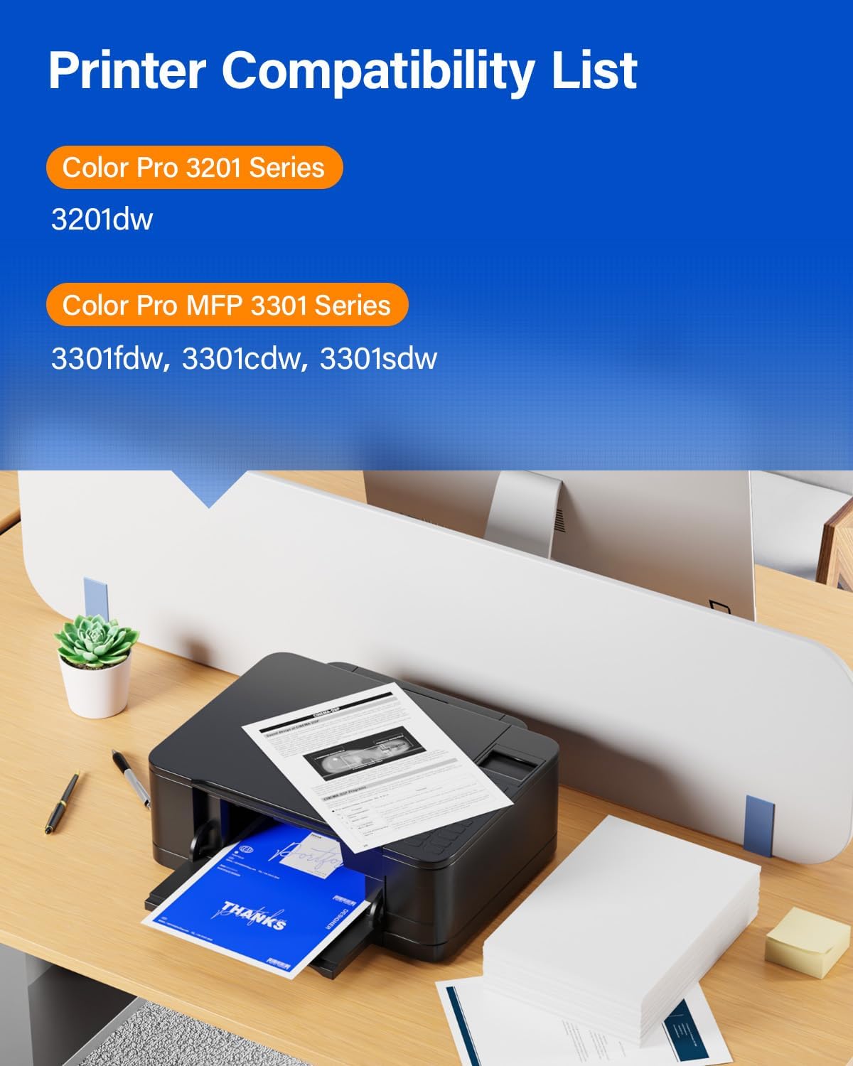- 【Compatible Printer】Compatible for HP Color LaserJet Pro 3201dw,Color LaserJet Pro MFP 3301cdw,Color LaserJet Pro MFP 3301fdw,Color LaserJet Pro MFP 3301sdw Laser Printer.