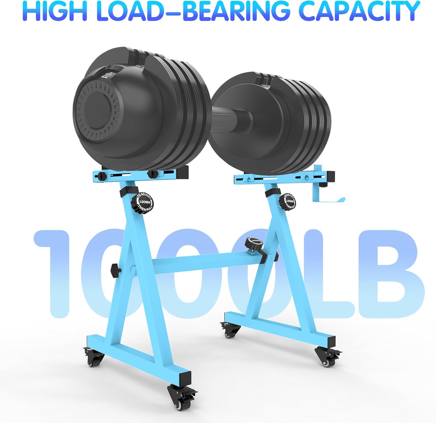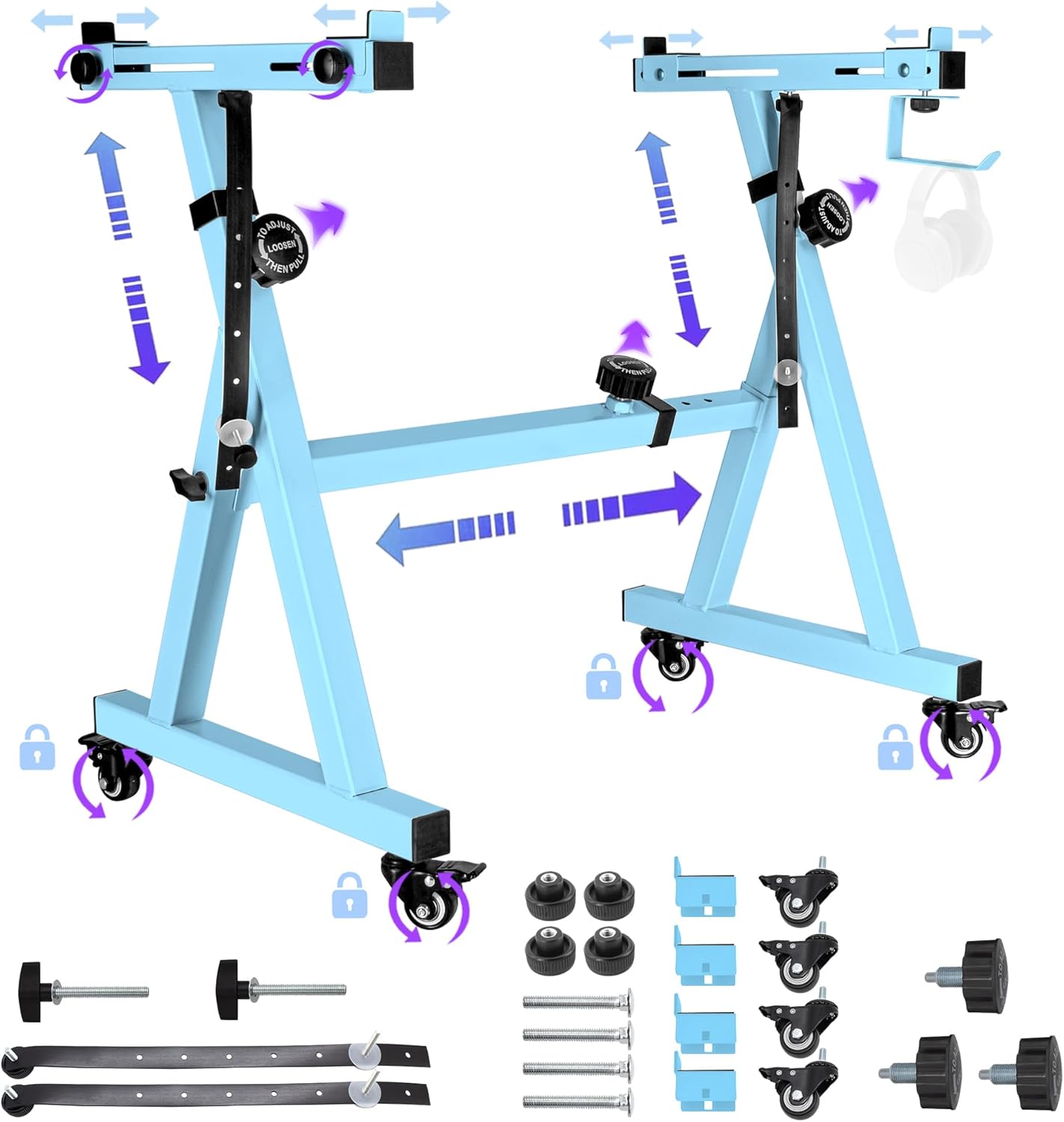 - Lockable universal wheels that allow you to move the stand anywhere easily.