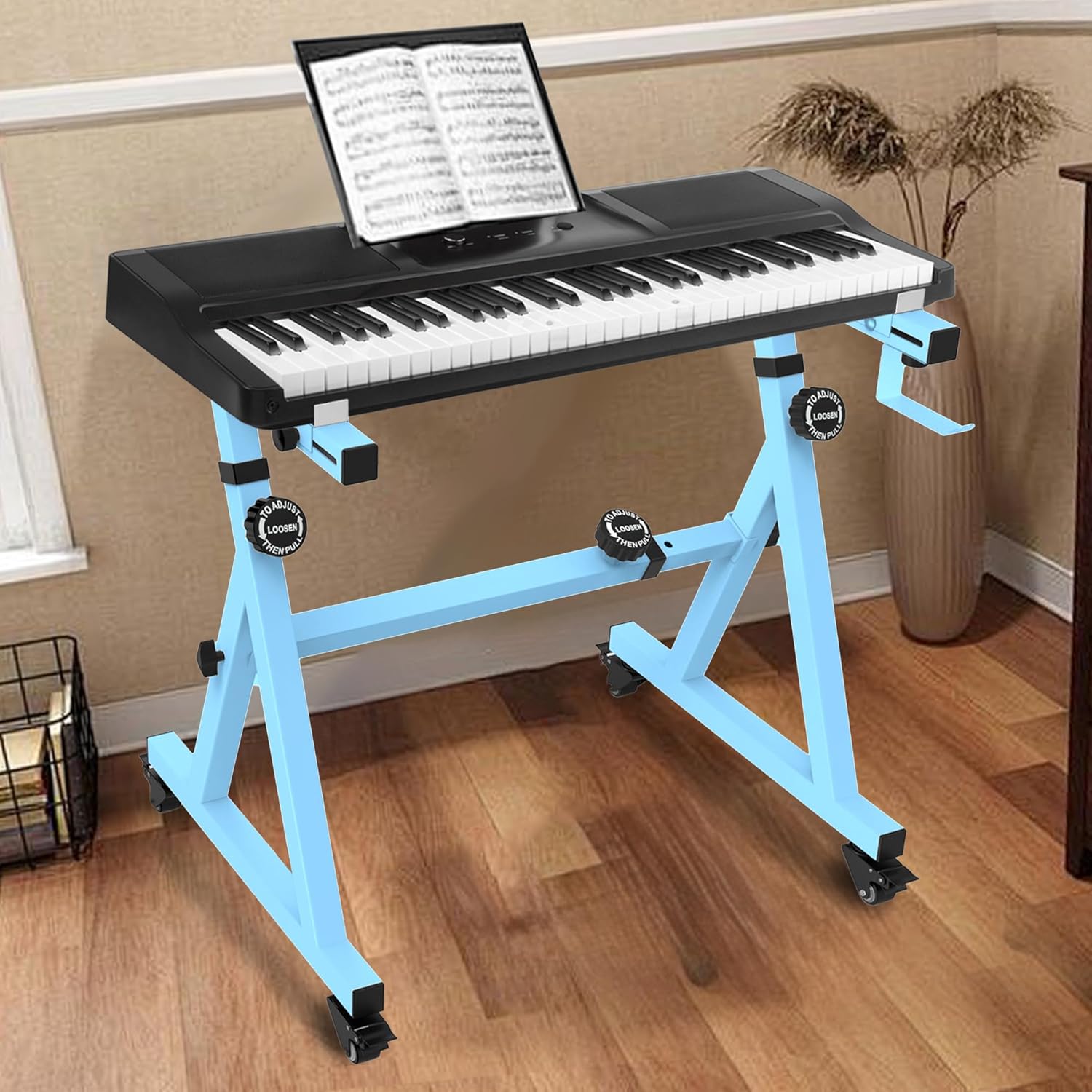 Universal Keyboard Stand, Z-style Heavy-Duty Piano Stand, Adjustable and Portable Piano Keyboard Stand for 61 and 88 Keys, Blue
