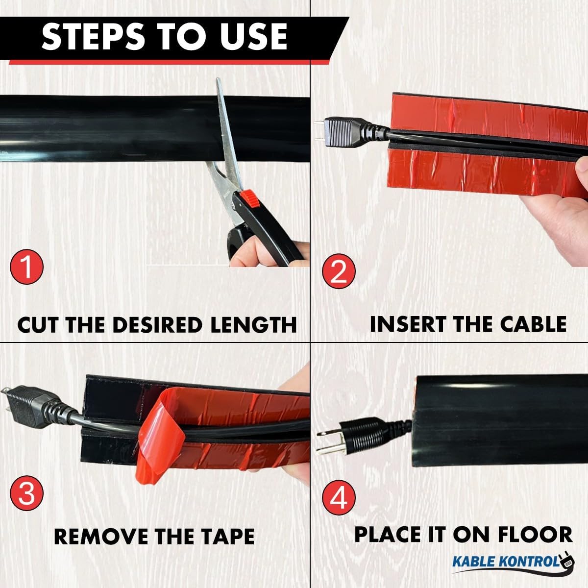 - Versatile Use: Kable Kontrol 5 feet silicone cable protector is perfect for use on hardwood, tile, carpet, and other floor types, with a heavy-duty adhesive tape that sticks securely.
