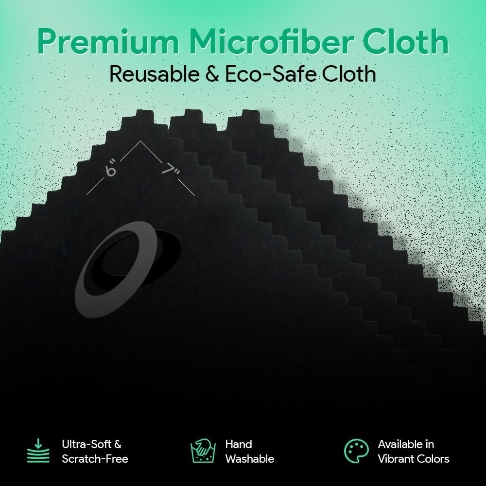 - Microfiber Cloth Included: This premium 6 x 7 inch eyeglass cleaner cloth is made from tightly woven microfiber, designed to remove dust, oil smudges, fingerprints, and dirt. Perfect as a microfiber cleaning cloth for lenses, screens, and glasses.