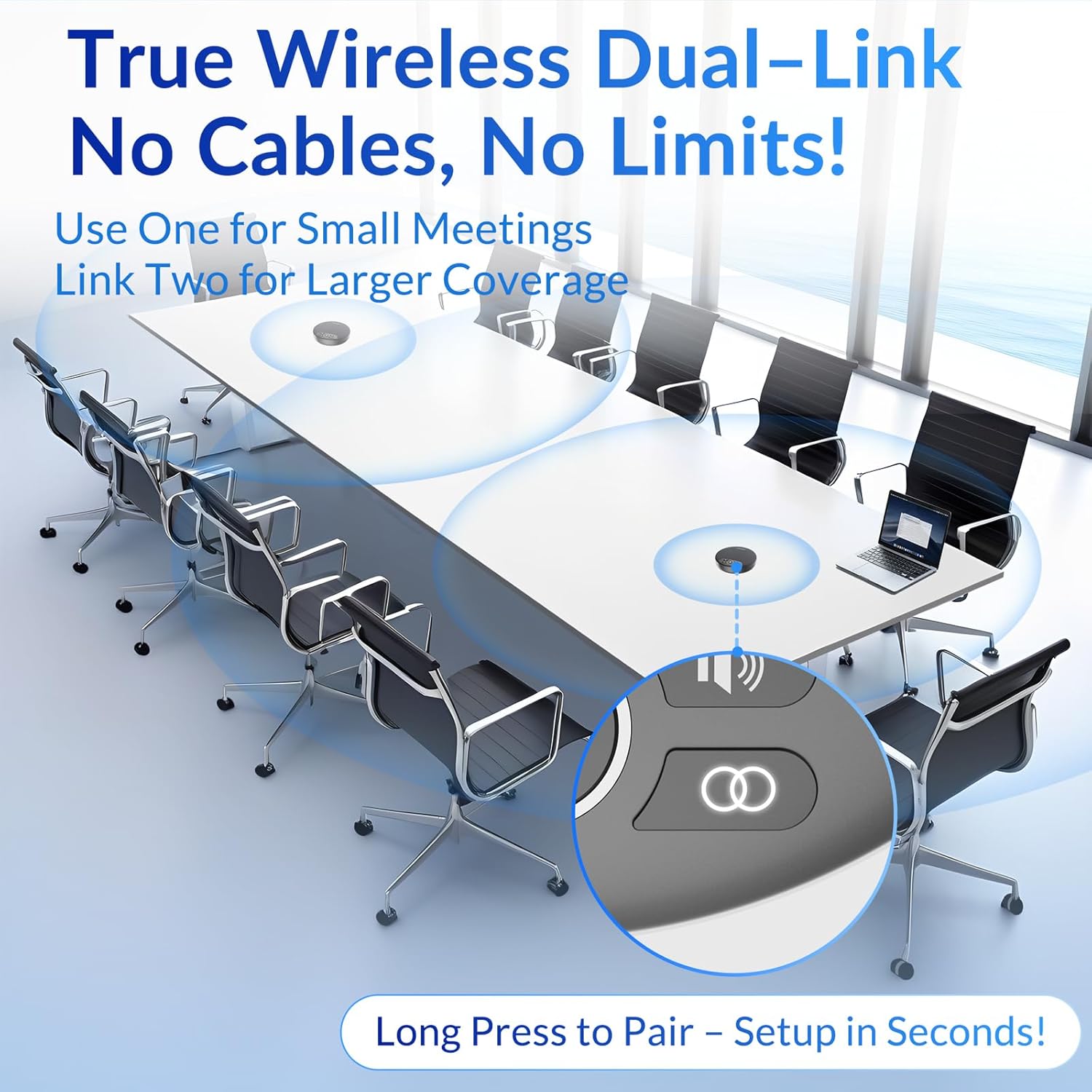- 【Daisy Chain for Large Rooms】Easily connect two speakerphones for extended coverage in larger spaces. Use each unit independently or link them with one button for synchronized audio.