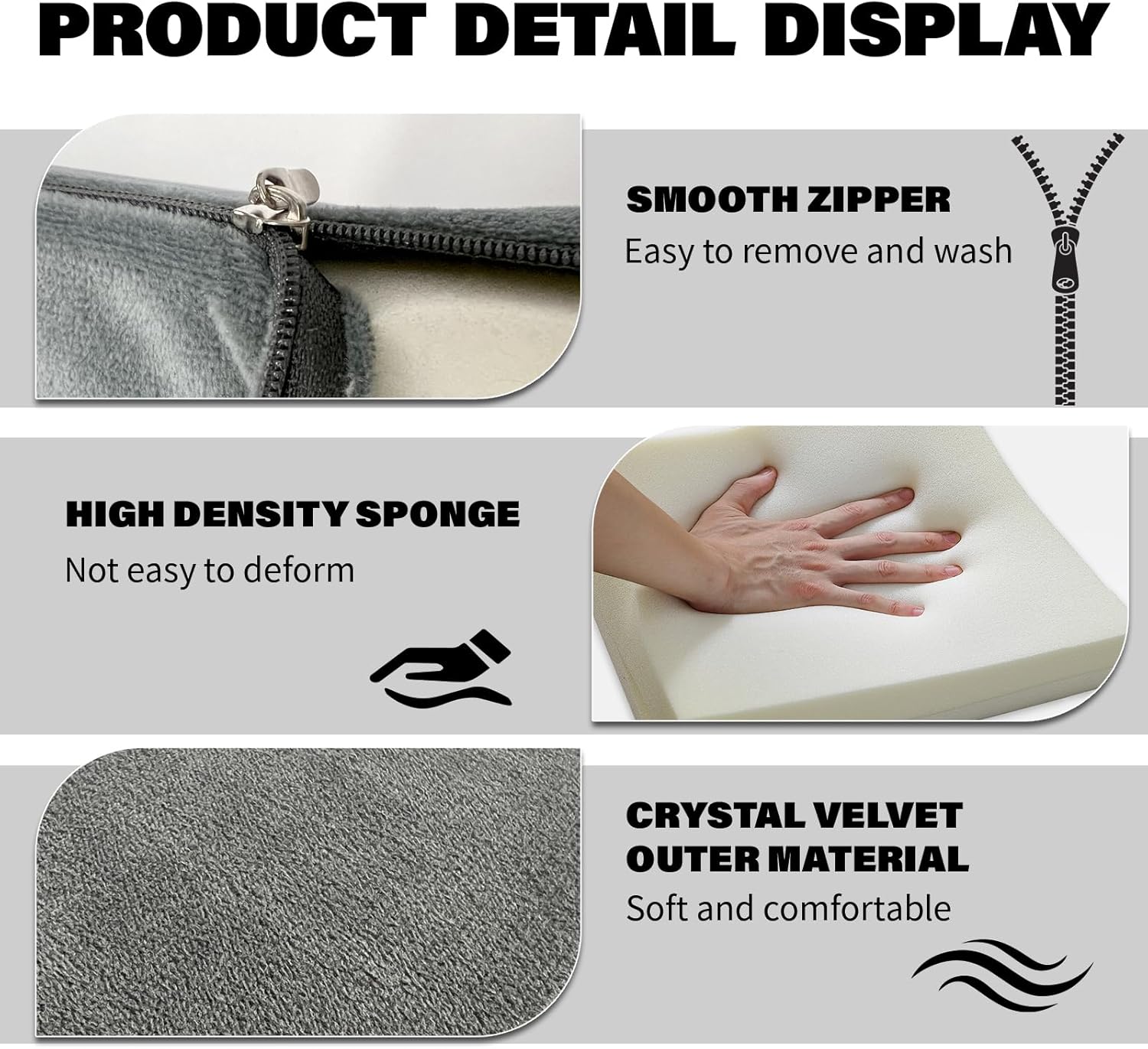 - Easy-Clean & Durable Build: Removable, machine-washable velvet cover paired with collapse-resistant 30D foam ensures long-lasting support. No sagging, no odor, and a non-slip base keeps it firmly in place.