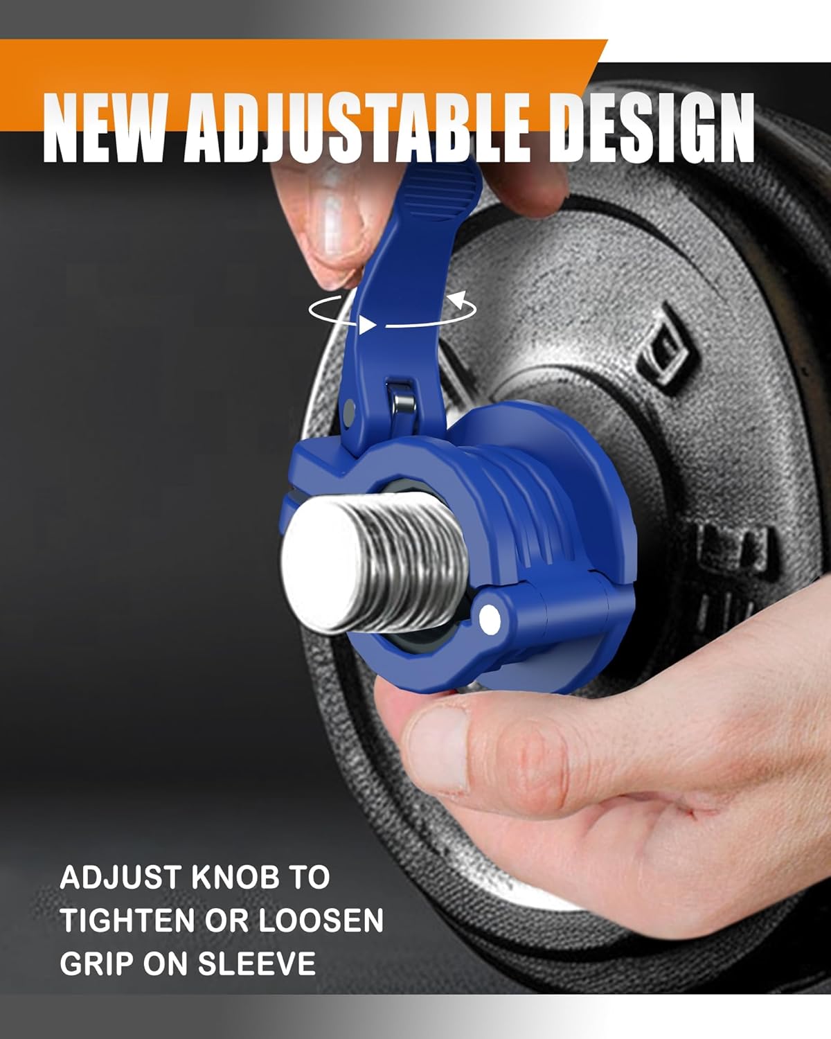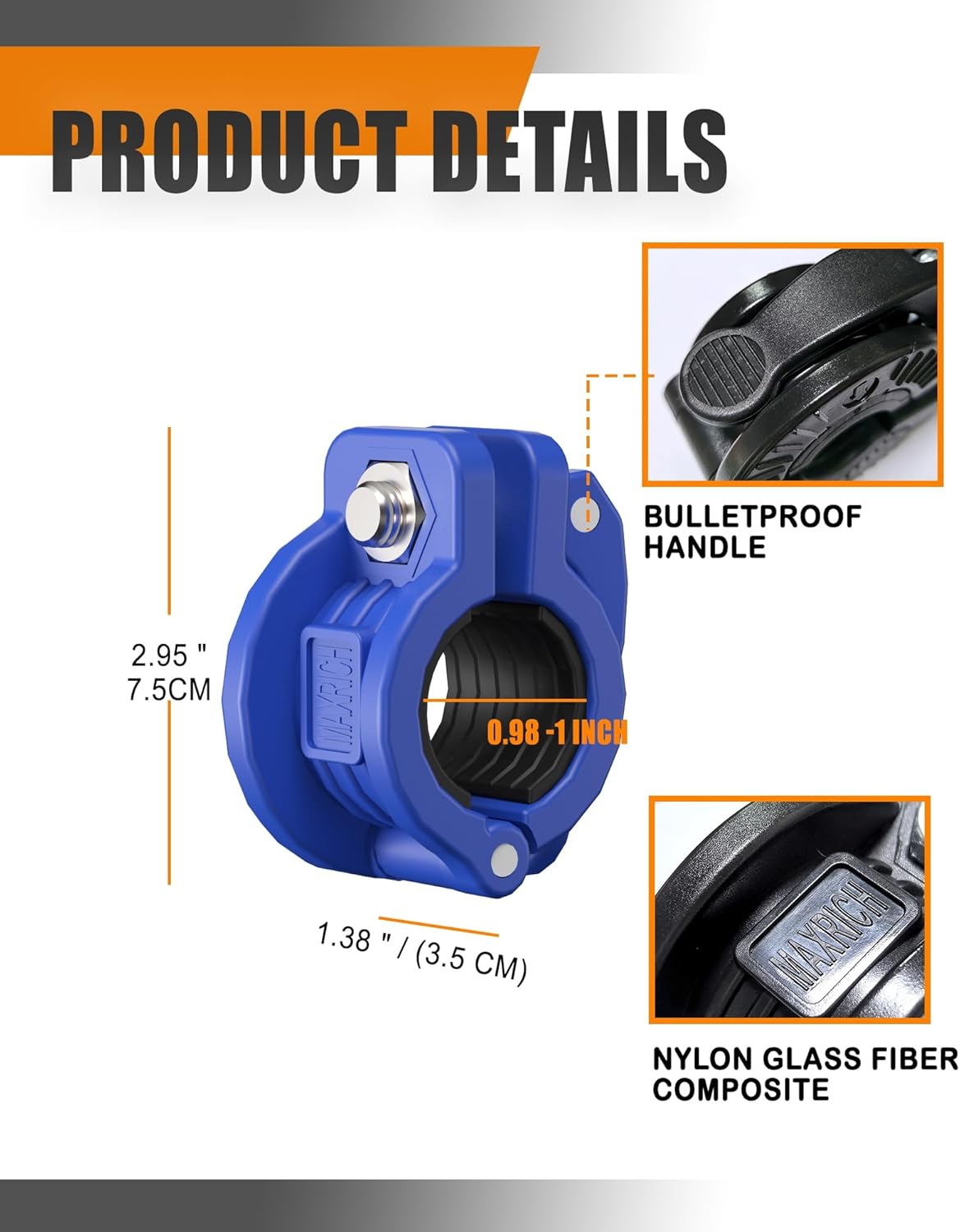 MAXRICH T Barbell Clamp 1 inch Multiple Sizes & Adjustable Weight Clips for Barbell Quick Release Barbell Clips|Barbell Collar Bar Locks for Weight Lifting (Blue 0.9-1.18inch)