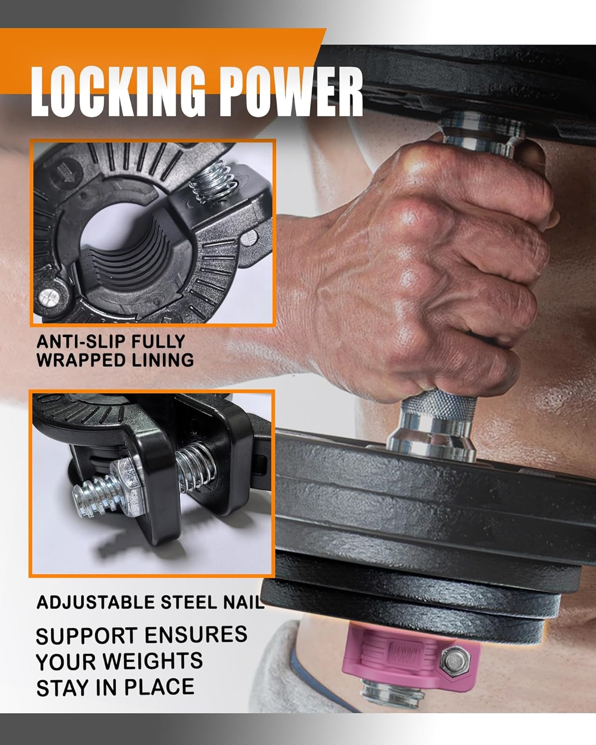 - HIGH-END QUALITY: heavy-duty hard nylon + TPR soft rubber, the complementary combination of soft and hard, weight clips for bars the nylon outer body is as hard as stone, resistant to falling, wear-resistant, the special rapid rebound of TPR soft rubber can withstand strong pressure and is not easy to deform,Commercial-grade quality to ensure your sports safety