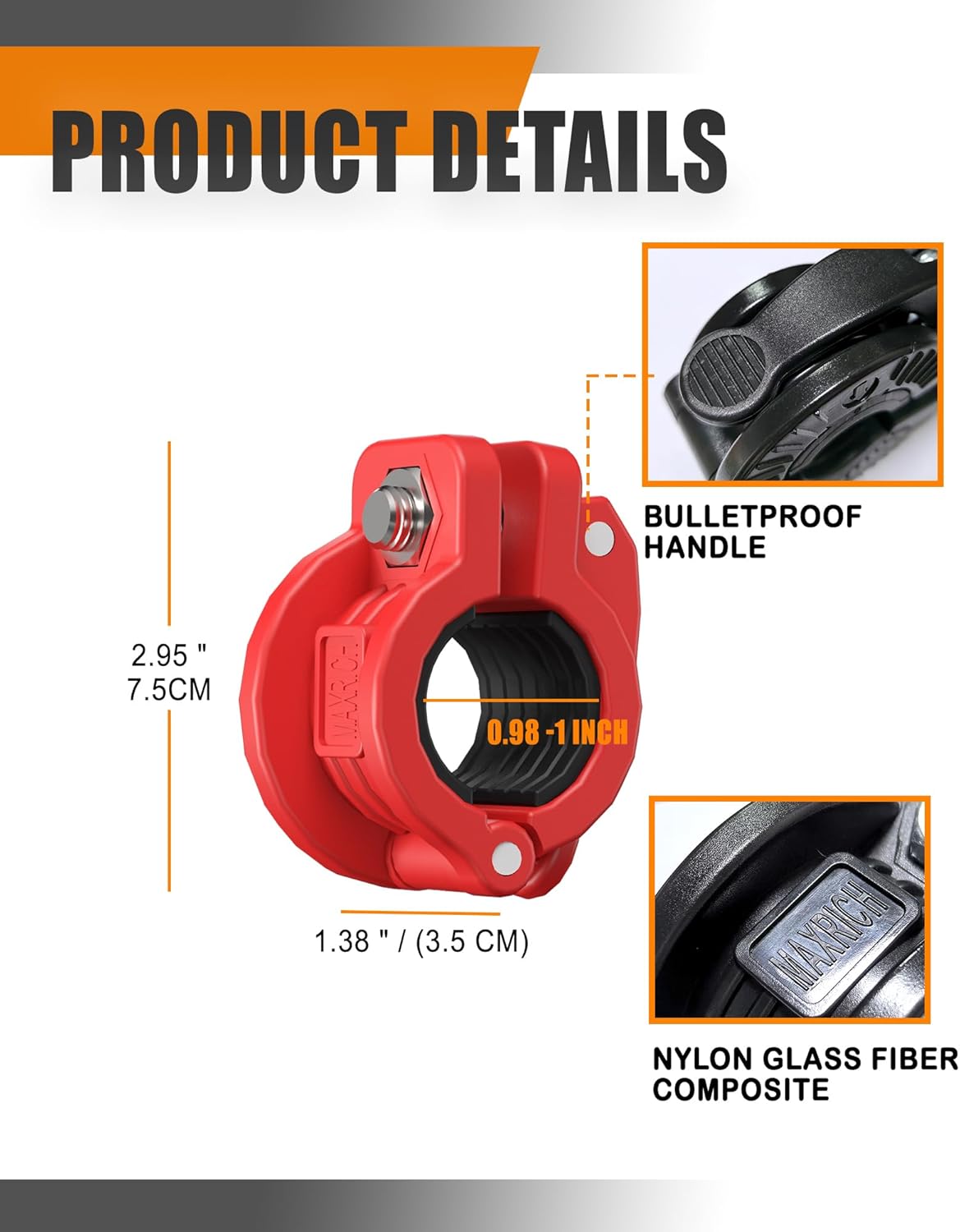 - UNIQUE CONFIGURATION: Say goodbye to a single size, the innovative design of MAXRICH barbell clamps is equipped with multi-size inserts, which can be easily installed or removed, and only 1 barbell clamp can be used for all sizes of barbell bars within 23-25.4mm. No more worrying about size