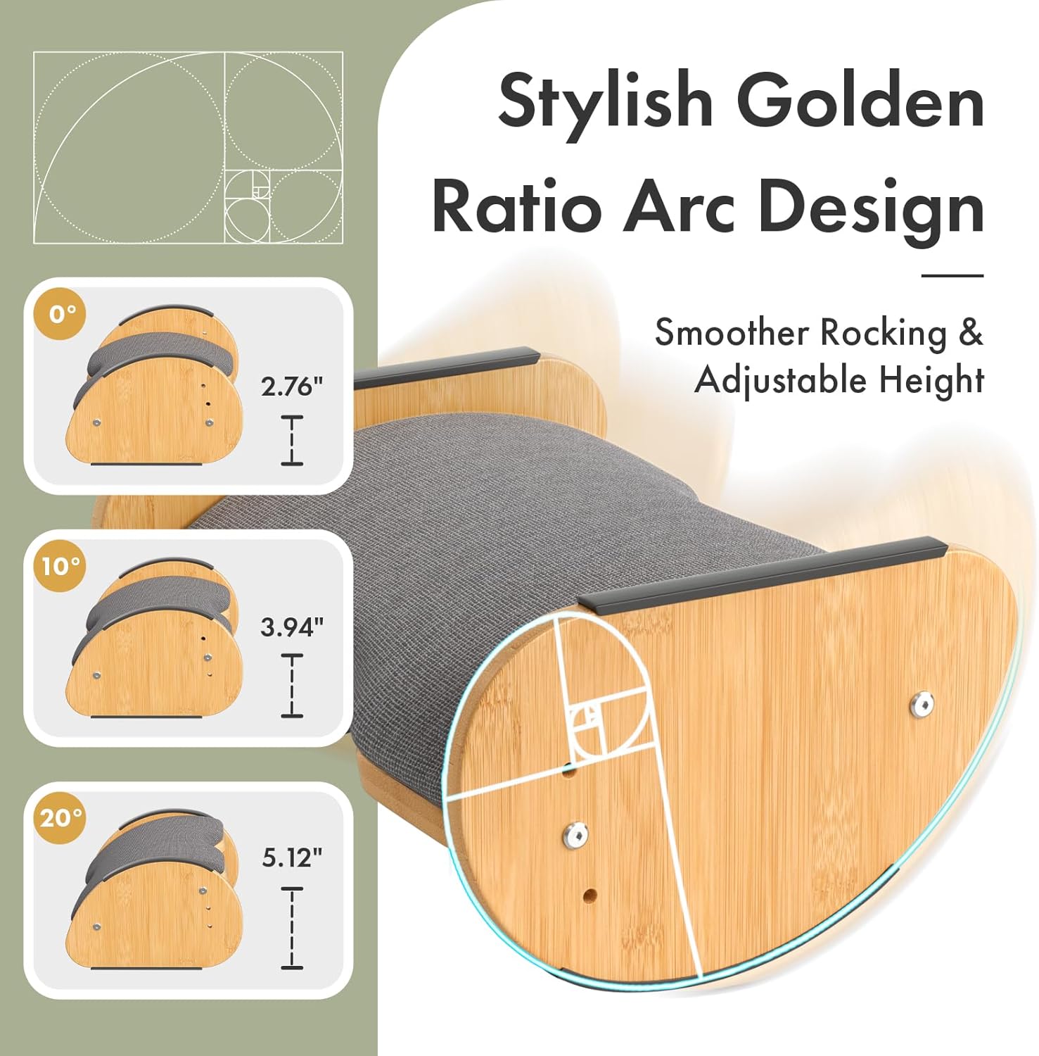 - Adjustable Foot Rest & Built to Last: Crafted from high quality natural bamboo, our under desk footstool is of good durability for long-lasting use and will not break as easily as the plastic one. Non-slip strips added to provide a firm grip and stay put. Golden ratio arc design offers smoother rocking while maintaining a sleek look. You can easily tilt back and forth to find optimal comfort and support