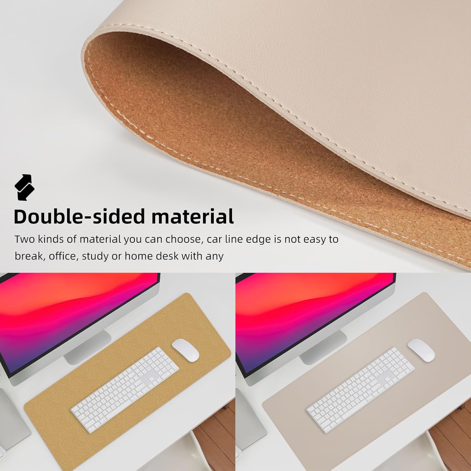 AFIING Leather Desk pad Protector, Large Non-Slip Office Desk Mat with Natural Cork & PU Leather, Waterproof Writing Mouse Pad for Office and Home (55in*17in,Beige)
