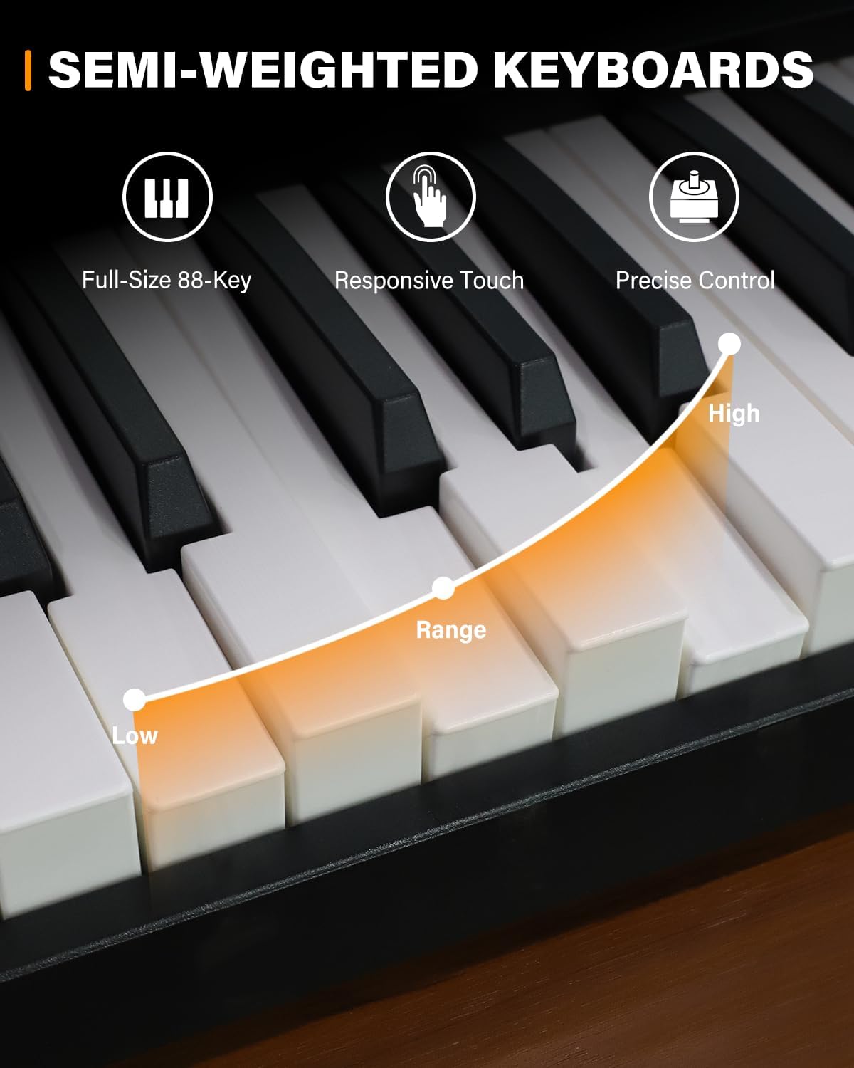 - 88 Semi-Weighted Keys: Enjoy a responsive playing experience with semi-weighted keys that provide a balance between synth-action and fully weighted piano keys, providing great finger touch and key depth, ideal gift for beginners