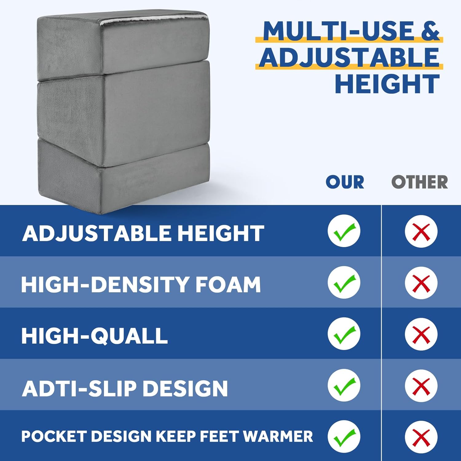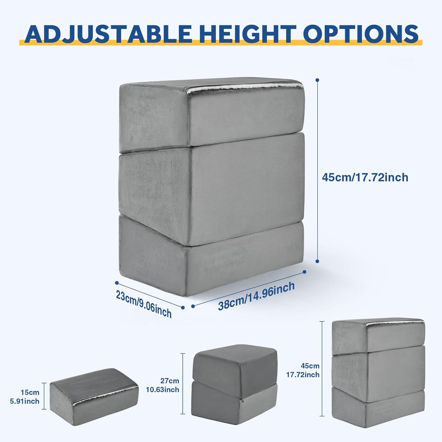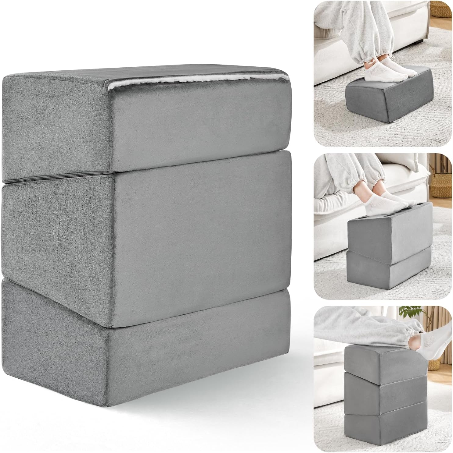- β€ [ Adjustable Foot Rest ] Wantell footstool offers you 3 adjustable height options of 6 inch and 11inch, 17inches. You can increase or decrease the number of layers according to the needs of different scenarios to maintain the correct sitting position while providing you with maximum comfort.
