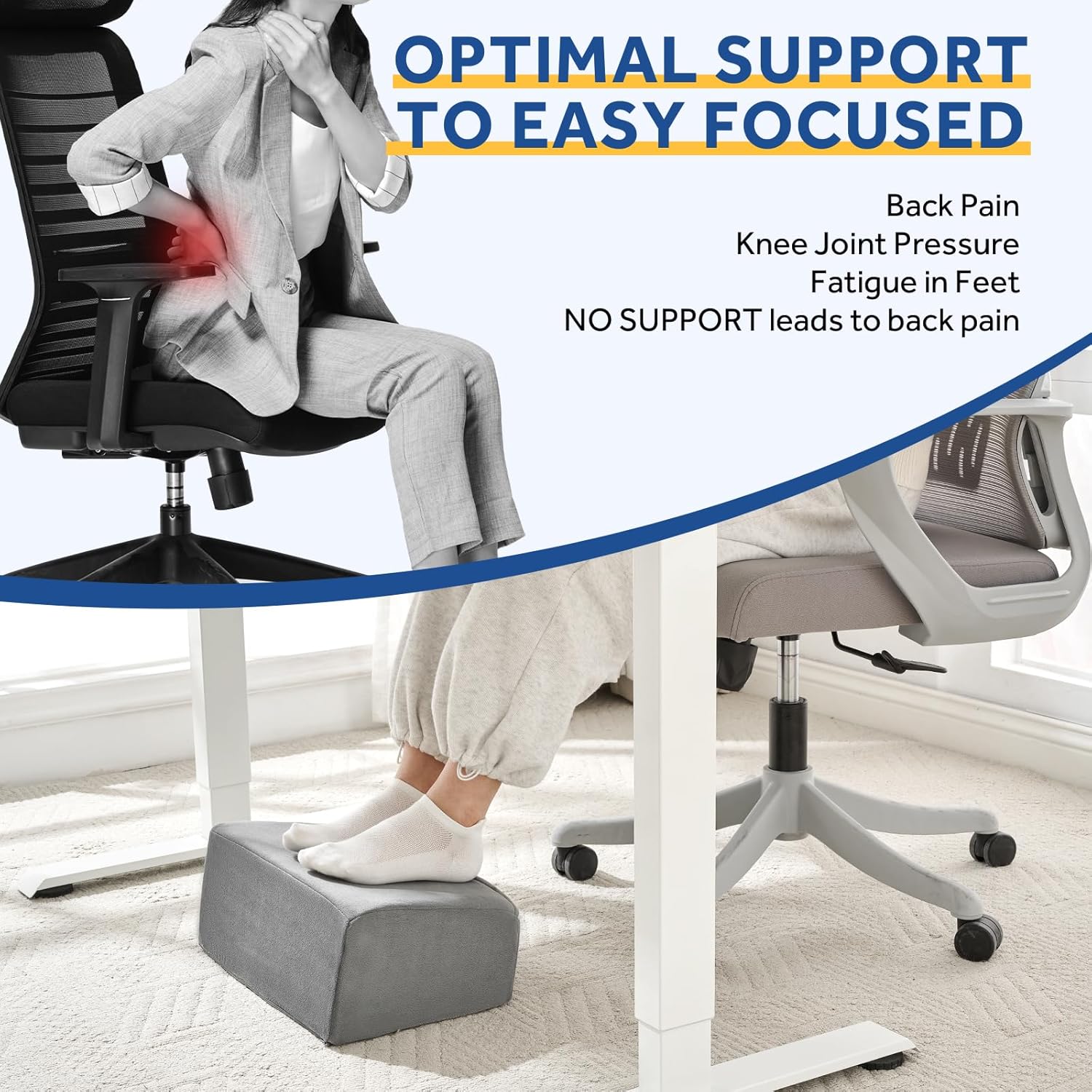 - β€ [ ErgonomicFoot Rest for Chair ] This pain relief foot rest under desk is perfect for those who spend long hours sitting, as it provides additional support and helps to reduce pressure on the legs.You won't be disappointed!