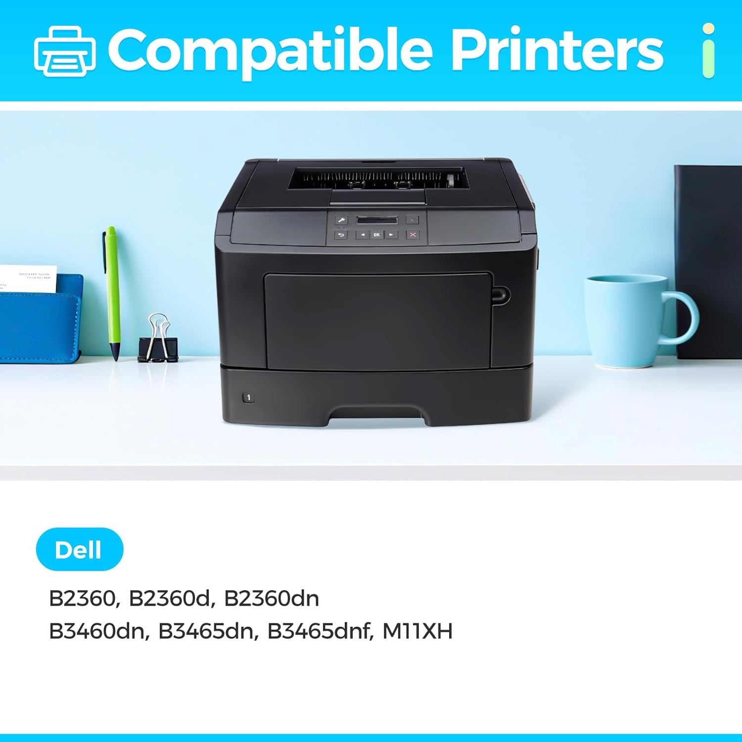 B2360 M11XH Toner Cartridge Black (High Yield with chip 1-Pack) Replacement for Dell B2360 M11XH Toner Compatible with Dell B2360 B2360d B2360dn B3460dn B3465dn B3465dnf Laser Printer Ink All-in-One