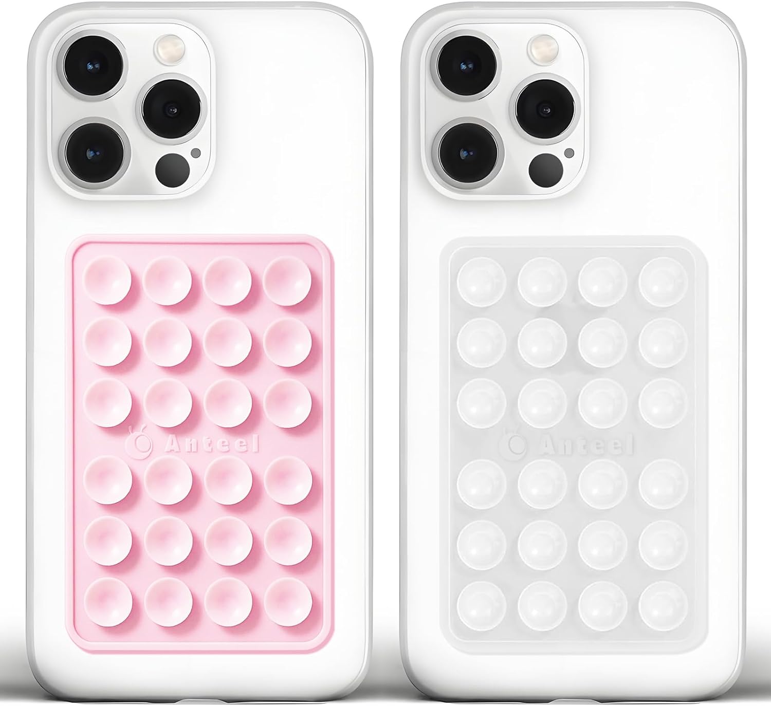 Anteel Medium-Sized Silicone Suction Phone Case Adhesive Mount, Enhanced Suction Power and Upgraded Thickened Sticky Phone Grip, Durable, Hands-Free Sticky Phone Holder, 2.28"x3.46" (LPK&TP)
