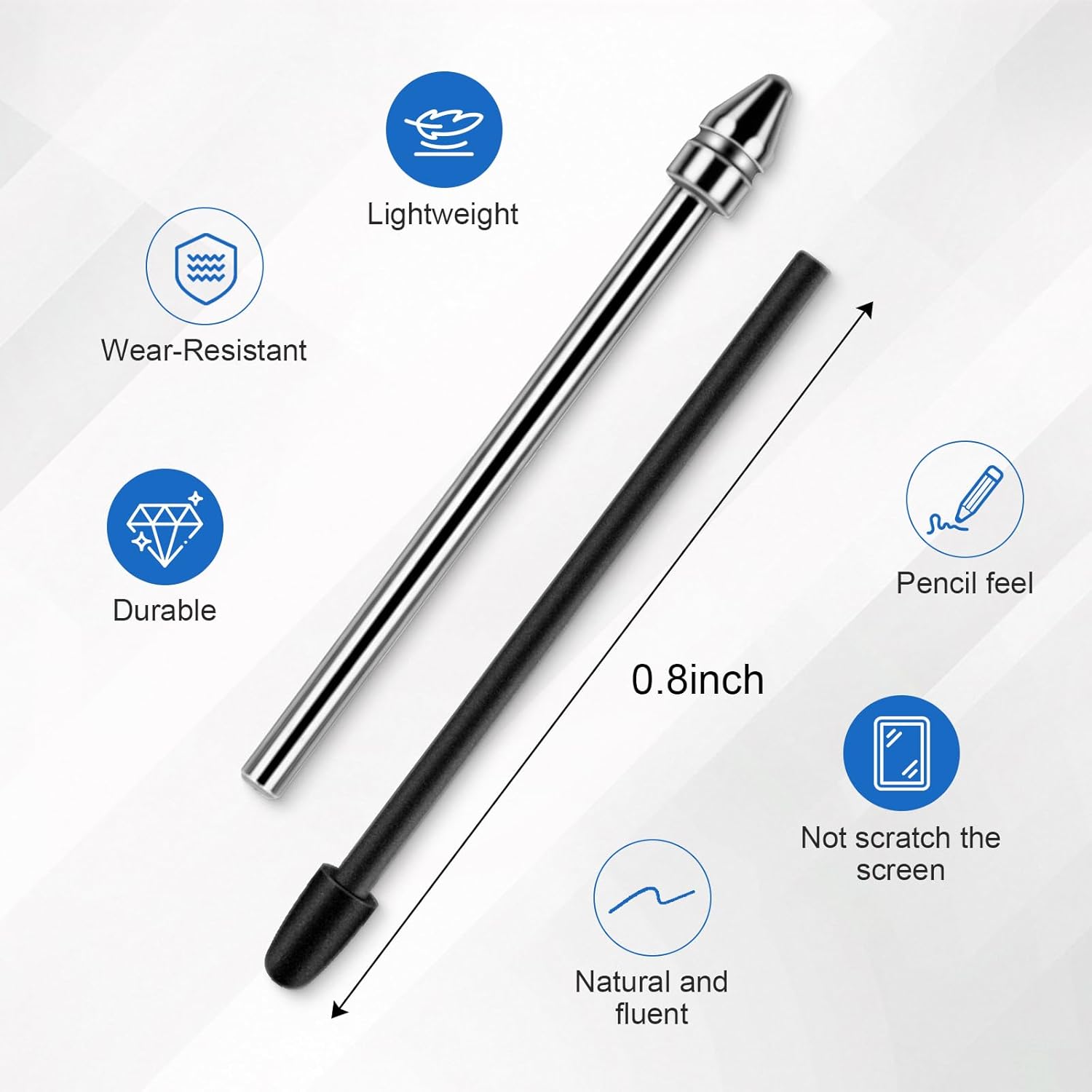- Write like on paper: Fine tips, will increase the resistance between the tips and the screen, not slippy but more smooth ,make your note-taking precise and feel like hand writing on real paper.more smoothly ,make note-taking more convenient, improve the work efficiency