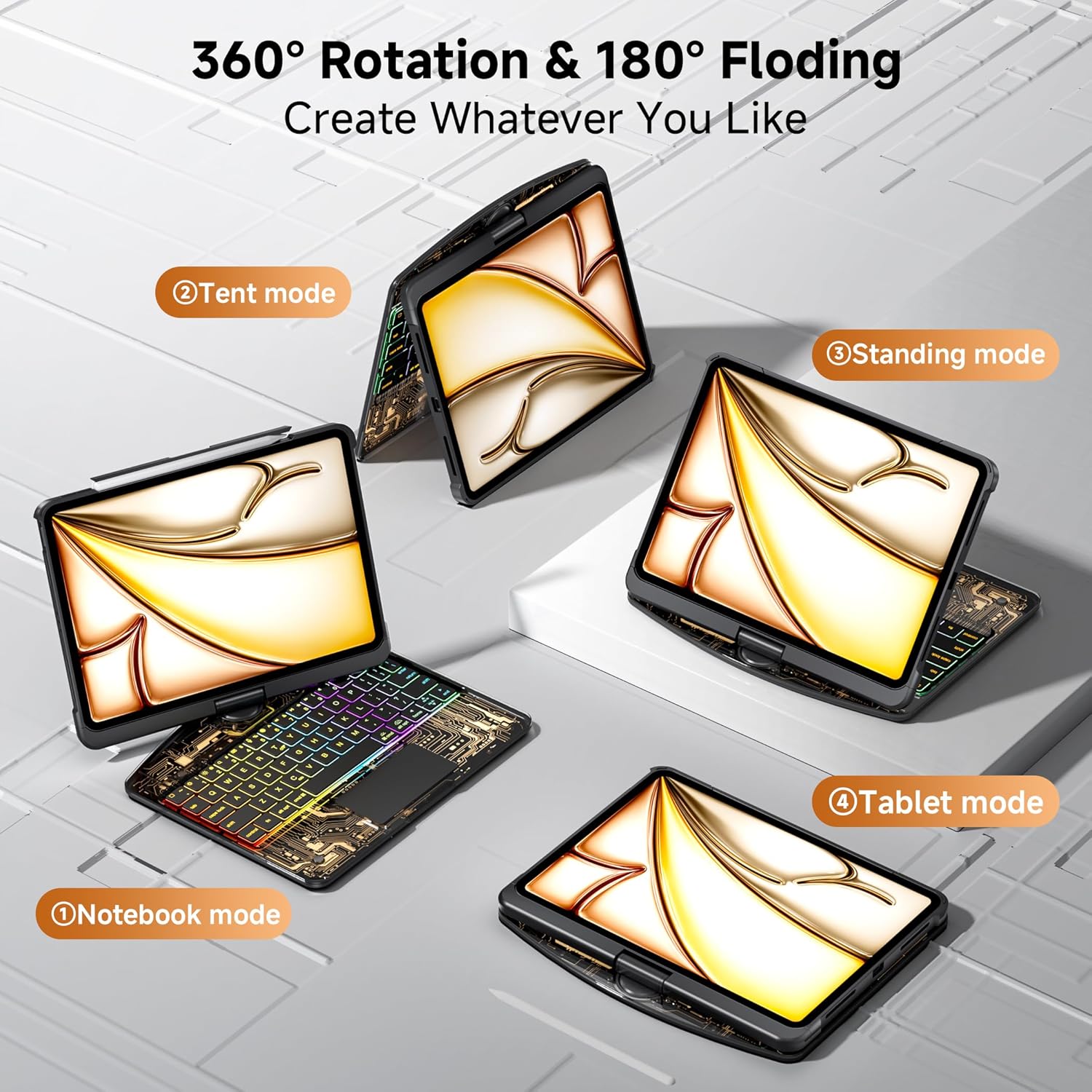 Keyboard Case for iPad 11 inch Pro 4/3/2/1st Gen & 11’’ iPad Air 2025 M3, 2024 M2 & 10.9" iPad Air 5th/4th Gen, 360° Rotating Stand Transparent Protective Cover with Pencil Holder (Black)
