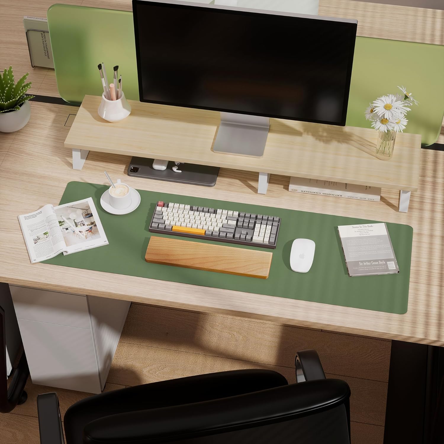 Aothia Leather Desk Pad Protector - Large Mouse Pad, Office Desk Mat, Non-Slip PU Leather Desk Blotter, Laptop Desk Pad, Waterproof Desk Writing Pad for Office and Home (Olive Green, 38" x 13.7")