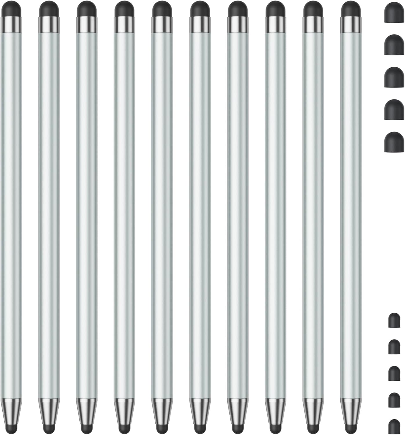 - 【Enhanced Precision with Dual Rubber Tips - Smooth, Comfortable, and Stylish】Experience unparalleled accuracy with our dual-tip stylus, featuring two premium silicone rubber tips (7mm/5mm) designed for smooth, responsive performance across tasks like browsing, writing, drawing, and gaming. These soft, durable tips protect your screen from scratches and reduce fingerprints, making it perfect for users with long nails or larger fingers. Crafted with a sleek aluminum body, this stylus blends functionality and elegance, ensuring a seamless and stylish digital experience every time.