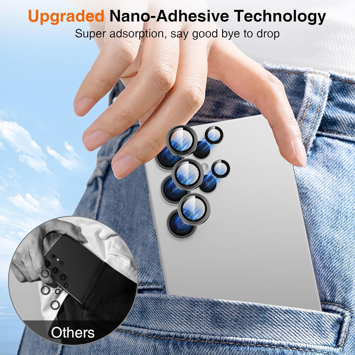 - Upgraded Nano-Adhesive Technology: The Samsung Galaxy S25 Ultra camera protector adopts the newest developed flexible adsorption technology to protect camera from all angle, dust free and waterproof, fitting tightly does not easy to fall off. Using removal tool if you want change, don’t worry about residual glue and it isn’t damage the camera.