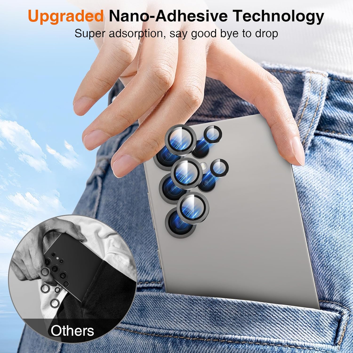 - Upgraded Nano-Adhesive Technology: The Samsung Galaxy S25 Ultra camera protector adopts the newest developed flexible adsorption technology to protect camera from all angle, dust free and waterproof, fitting tightly does not easy to fall off. Using removal tool if you want change, don’t worry about residual glue and it isn’t damage the camera.
