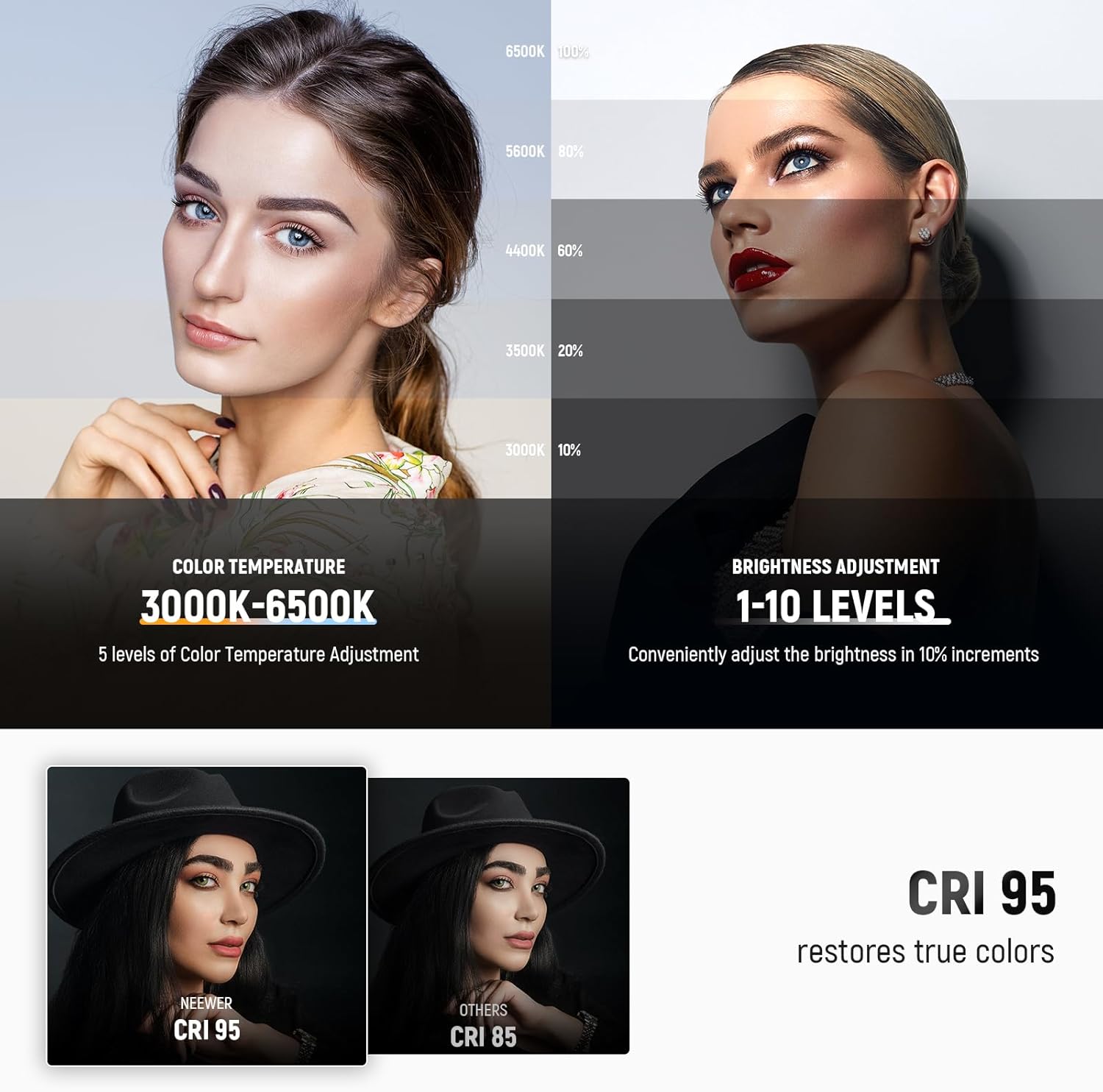 - ăIntroducing NEEWER BASICSă Simple and practical, NEEWER BASICS is an economical product line that focuses on essential functions and designs, without unnecessary extras and materials. With 84 LEDs and a diffuser film, the FR16 table lamp delivers bright, soft, and even light with no blue light, flickering, or glare. Essential and must have for office, work from home, college dorm room study, reading, computer/gaming desk, streamer/content creator/influencer photography accessories and supplies
