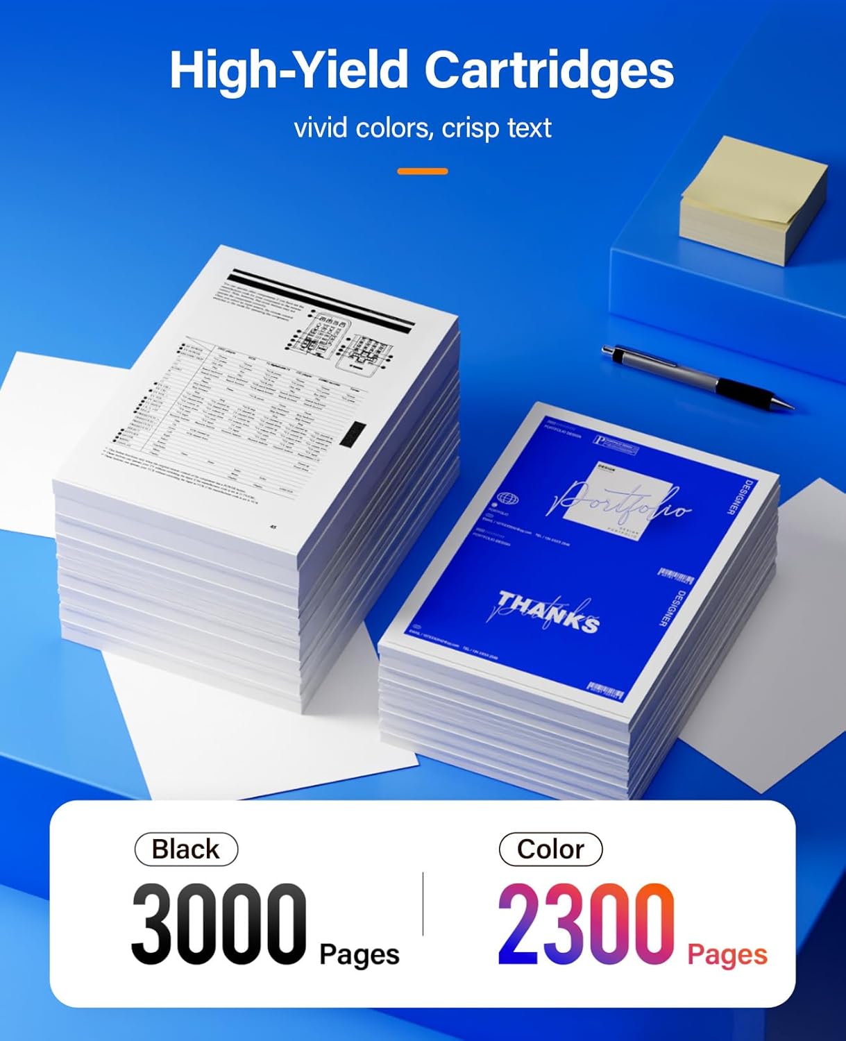 - High Yield Pages: 3,000 pages for Black and 2,300 pages Color toner cartridge (A4, 5% Coverage)
