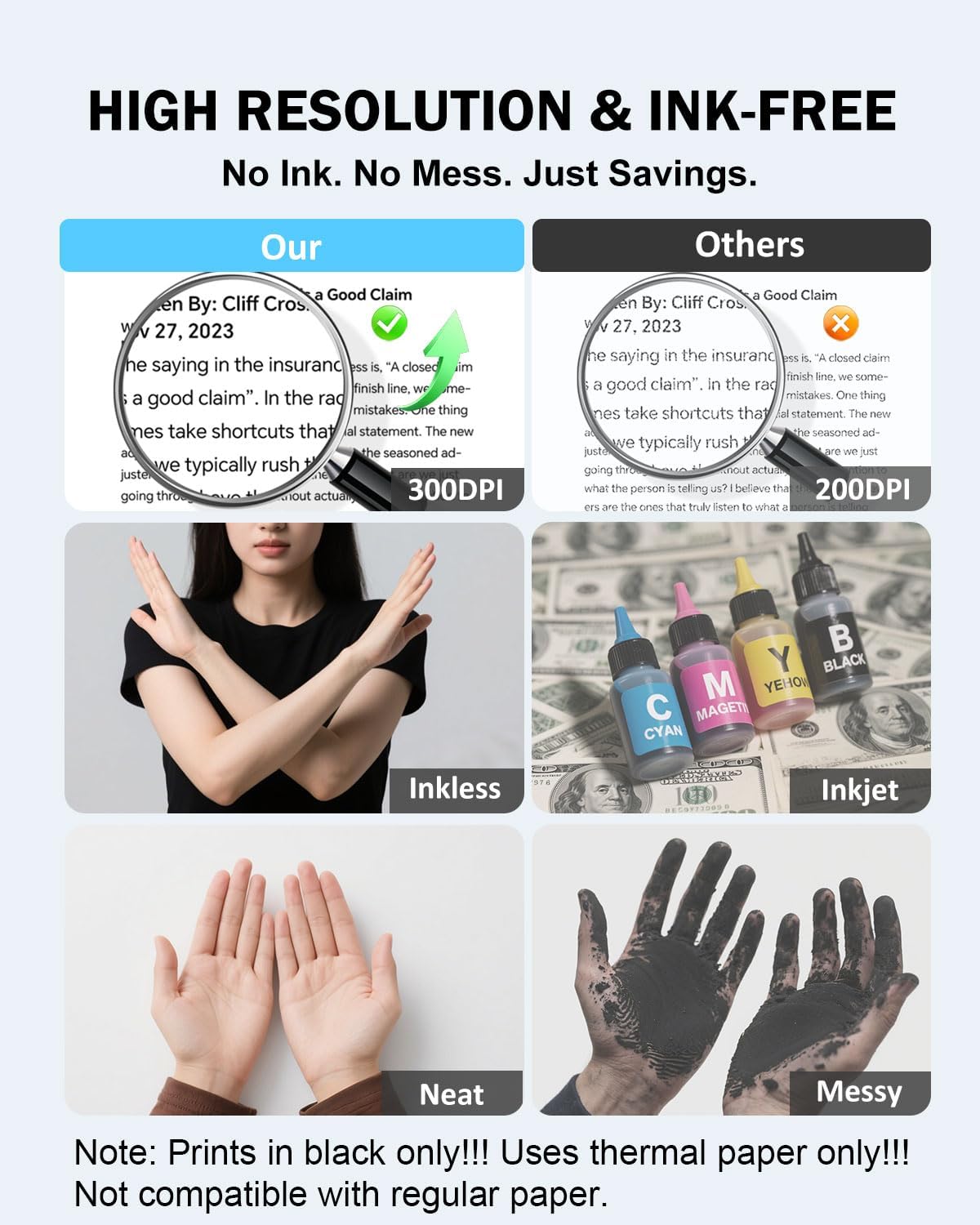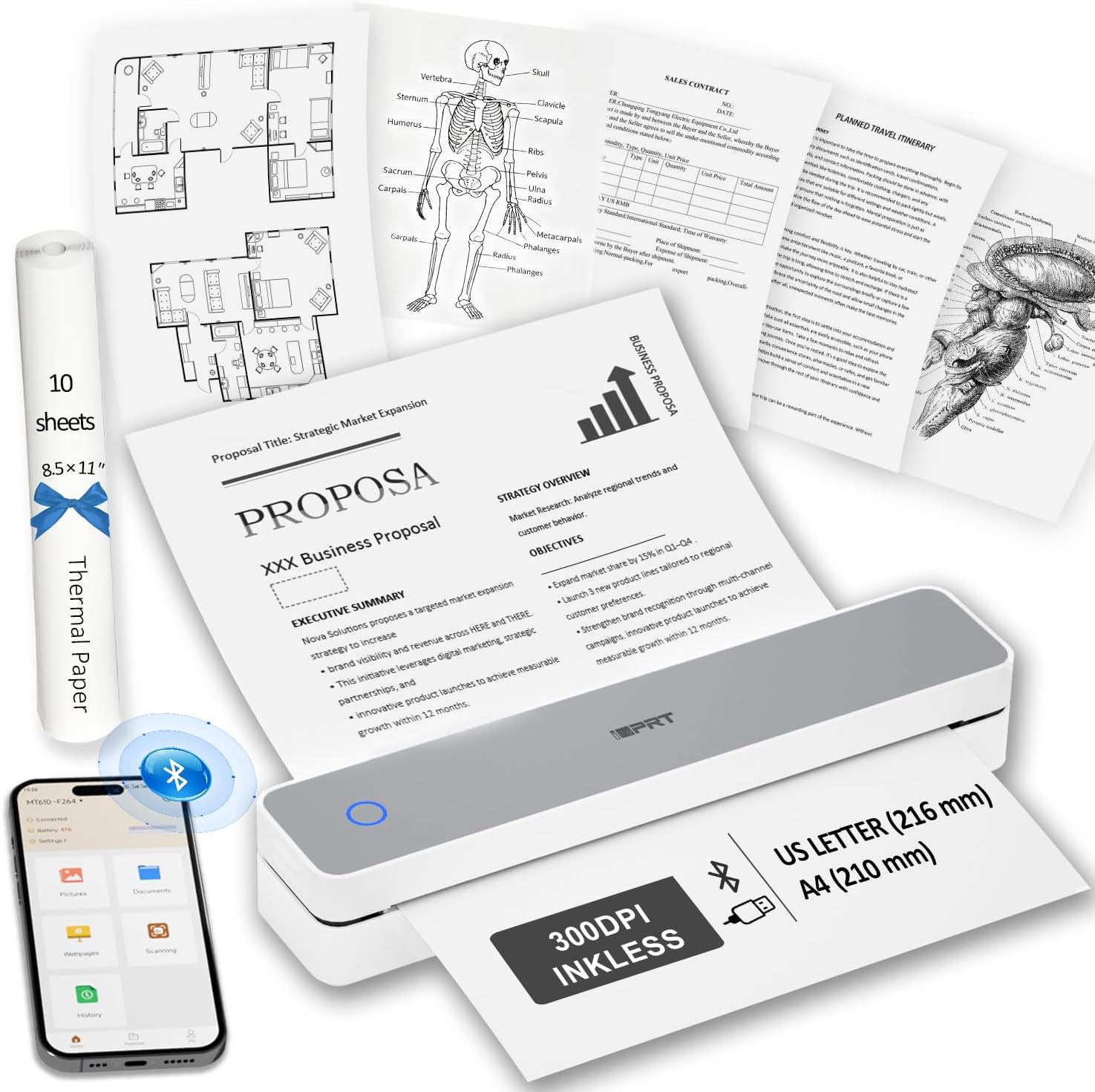 - ✅ Inkless Portable Printer – No Ink, No Mess! Say goodbye to cartridges and toner! The iDPRT 610Pro portable printer uses advanced thermal technology for clean, cost-effective, 300DPI printing—anytime, anywhere. Includes: printer, 10 sheets thermal paper, USB-C cable & free app.(⚠️ Only compatible with black & white thermal paper. Not for inkjet/laser paper).