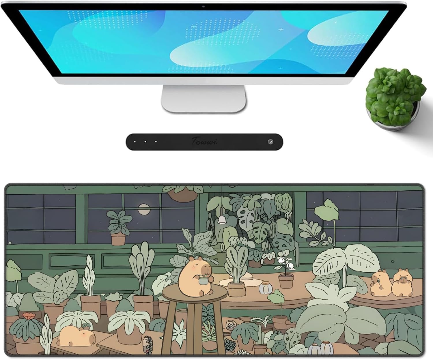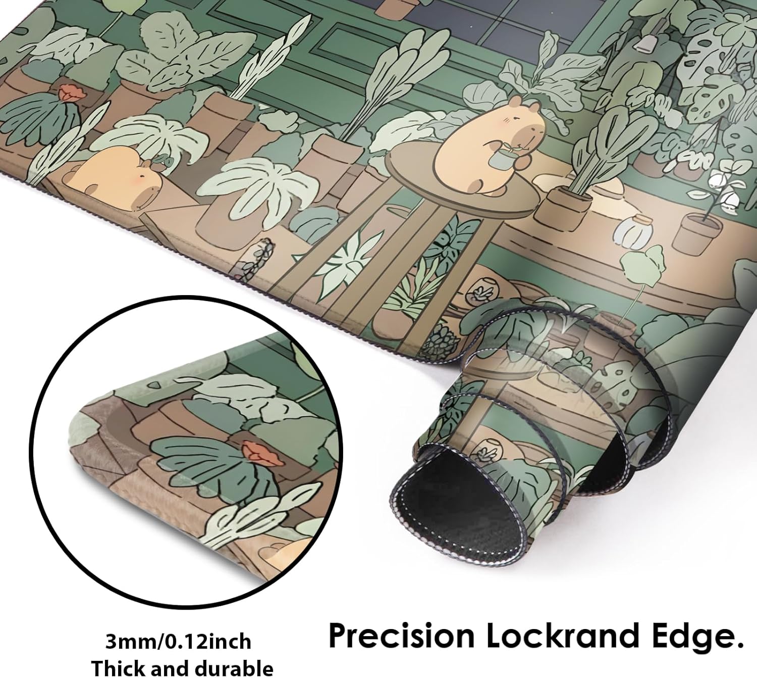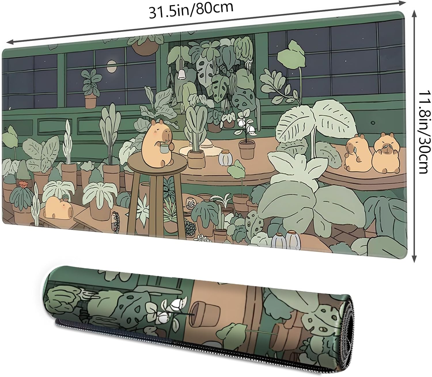 Galdas Gaming Mouse Pad XXL XL Large Long Extended Big Mousepad Non-Slip Rubber Keyboard Mouse Pad with Stitched Edges for Laptop Home Office (31.5x11.8x0.08 Inch) … (Green Window)