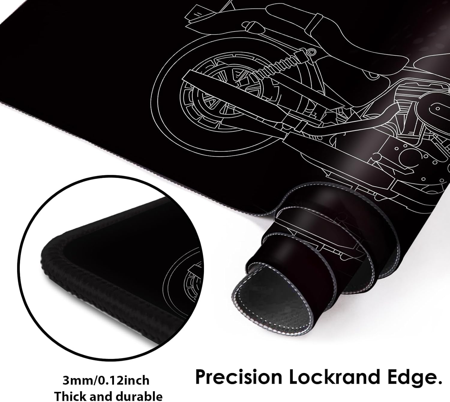 Galdas Gaming Mouse Pad XXL XL Large Long Extended Big Mousepad Non-Slip Rubber Keyboard Mouse Pad with Stitched Edges for Laptop Home Office (31.5x11.8x0.08 Inch) … (Motor)