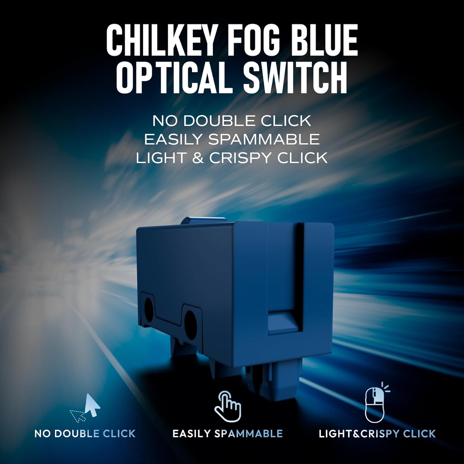 - Fast and Precise Gaming Mouse: Utilizing the first generation Chilkey Fog Blue Optical Switch based on light-sensing technology, it offers lightning-fast response times and precision, enjoy reliability and speed that outshines all others, and can withstand up to 100 million clicks, reducing the frequency of replacements