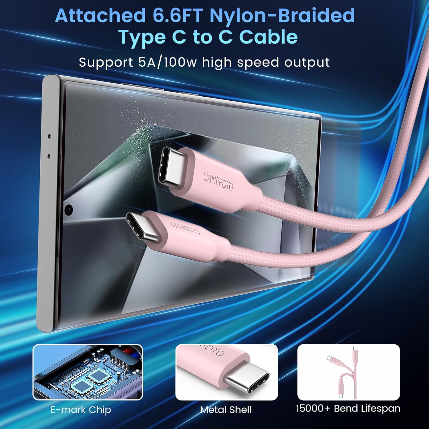 - 【2X 6.6FT Type C Cord】: This samsung galaxy s24 ultra charger kit come with 2pack 6.6ft/2m 100W Type-C charger fast charging cord, meticulously crafted with premium nylon braiding. The tangle-free cables provide the ultimate convenience, allowing you to comfortably charge your device from the comfort of your bed, couch, or office. Enjoy unparalleled flexibility and durability with galaxy charger fast charging cord.