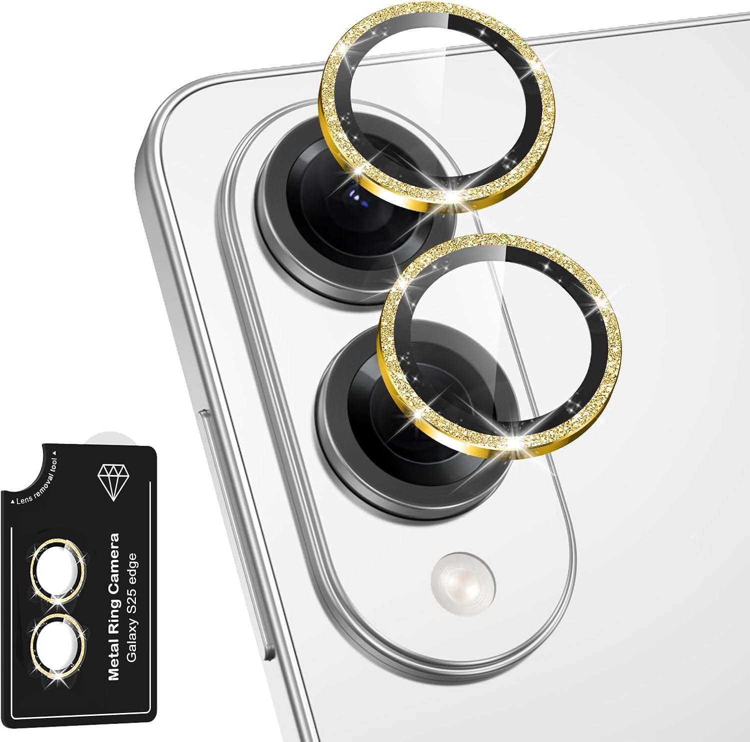 for Samsung Galaxy S25 Edge Camera Lens Protector, Individual Metal Ring Tempered Glass Lens Cover, [Strong Adsorption] Scratch Resistant Ultra-Thin HD Clear Lens Cover, 1 Set-Gold Sparkly