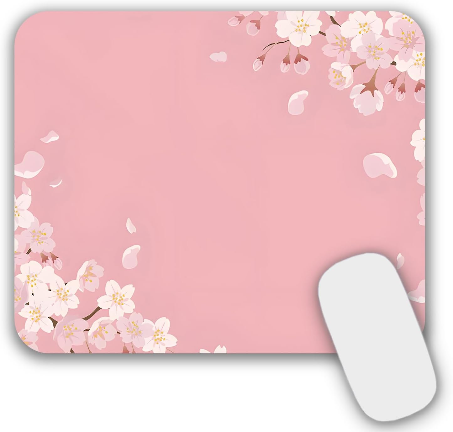 Mouse Pad, Gaming Mouse Pad, Non-Slip Rubber Base Mouse Mat with Designs for Laptop, Computer & Office, 9.5 x 7.9 x 0.12 inches (Pink Flower)