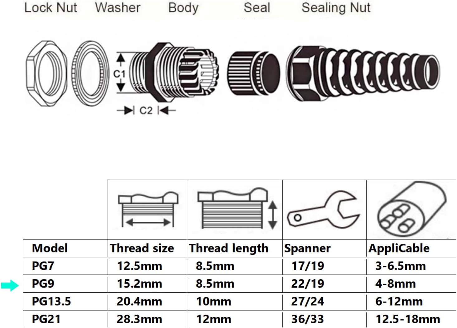- 【Simple Installation】: Designed for easy installation without the need for special tools, the PG9 cable gland kit comes with a locknut to ensure a secure fit for the cable.